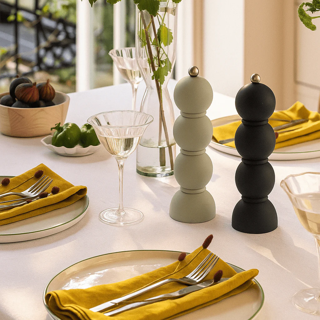 Bestel nu de Addison Ross Bobbin Peper- & Zoutmolen in Scandi Cappuccino en geef jouw tafel een frisse, moderne uitstraling!