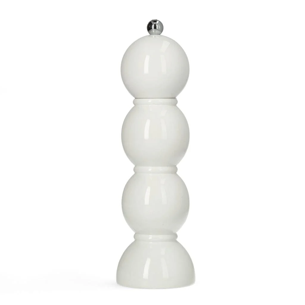 De Witte Bobbin Zout- of Pepermolen van Addison Ross is een unieke combinatie van design, functionaliteit en vakmanschap. Dit exclusieve ontwerp van Addison Ross brengt verfijning naar je keuken of eettafel en is geschikt voor zowel zout als peper dankzij de meegeleverde roestvrijstalen S- en P-schroefknoppen. Hiermee bepaal je zelf of de molen gebruikt wordt als zout- of pepermolen.