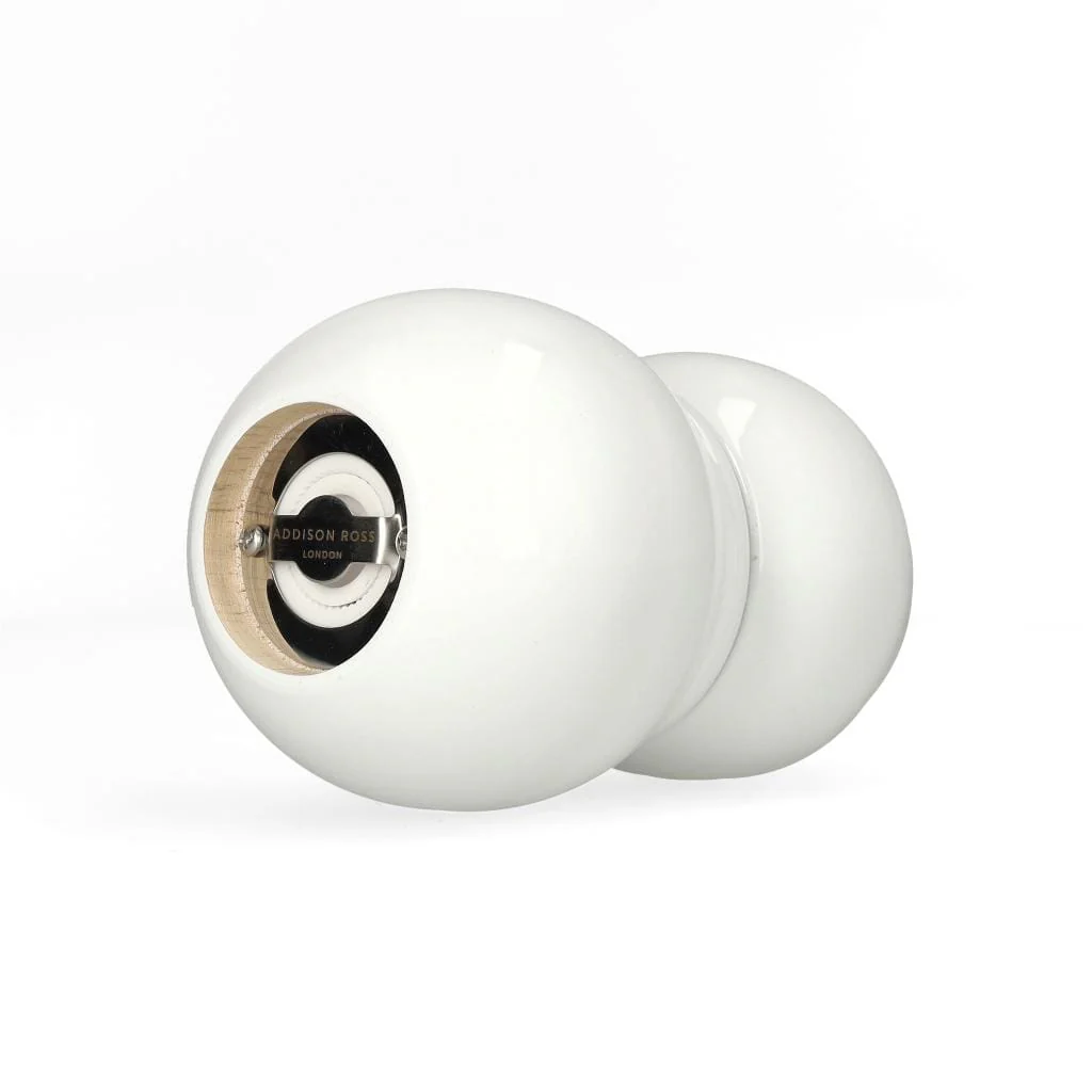 Voeg een vleugje stijl en functionaliteit toe aan je keuken of eettafel. Bestel nu de White Chubby Zout- of Pepermolen van Addison Ross en ervaar de perfecte combinatie van design, duurzaamheid en gebruiksgemak!