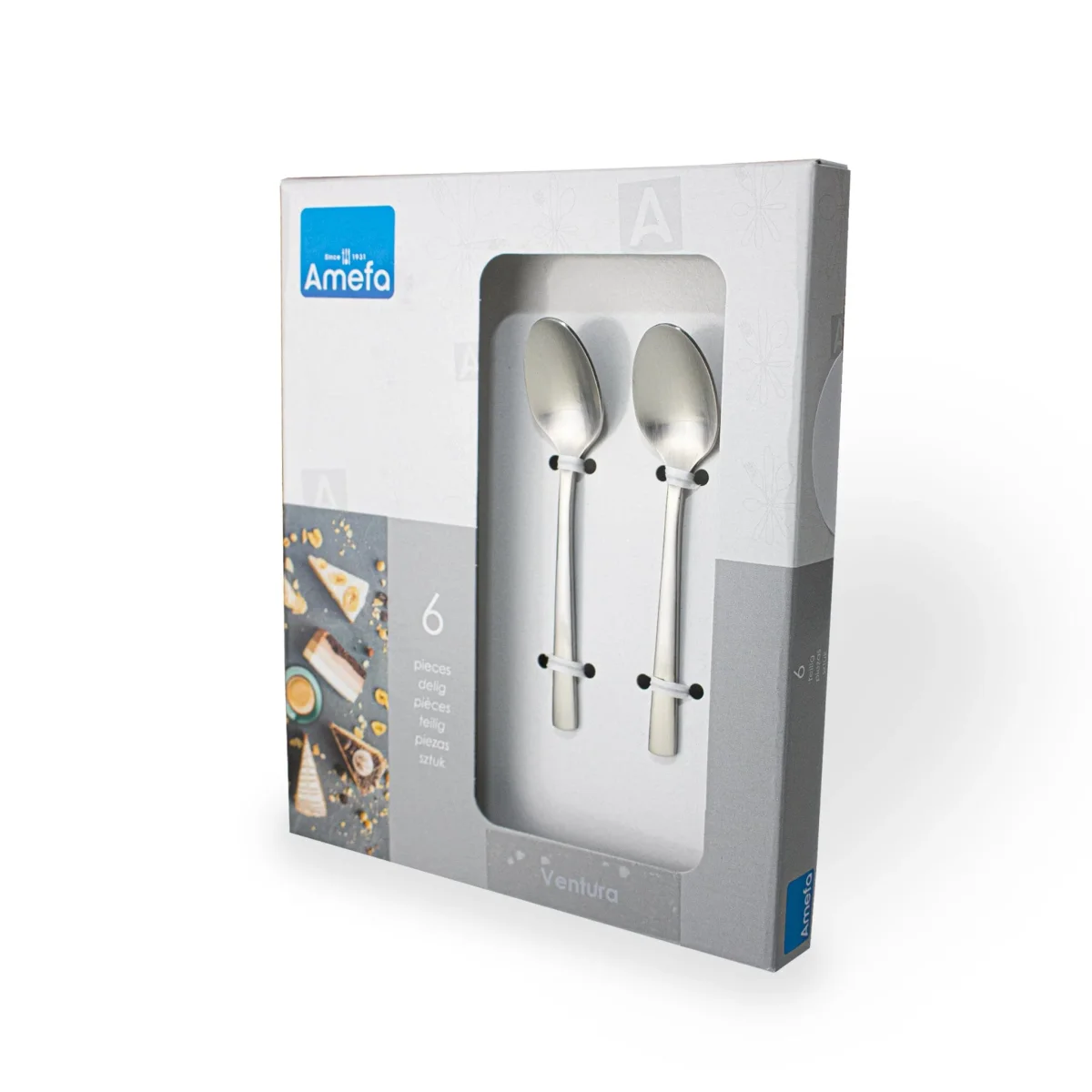 Deze Ventura theelepel set van het merk Amefa is een prachtige tijdloze theelepel set, die gemaakt is van hoogwaardig 18-10 roestvrij edelstaal. Het bestek heeft een matte afwerking en is geschikt voor reiniging in de vaatwasser.
