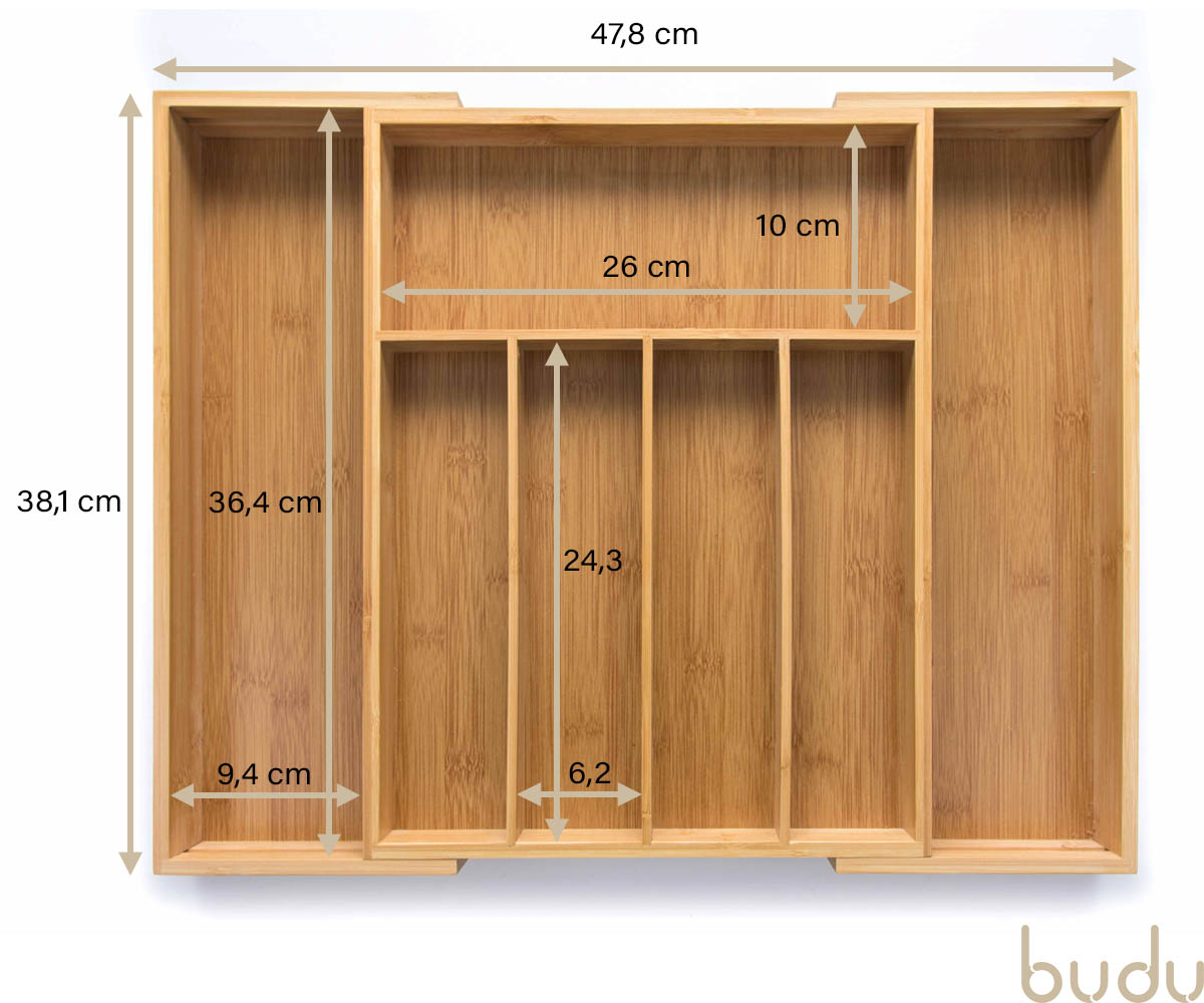 Budu heeft altijd de perfecte bestekbak voor u. Al onze bestekbakken zijn namelijk in de breedte uitschuifbaar. U kiest dus simpelweg de bestekbak die past bij de diepte van uw lade. Vervolgens schuift u de bestekbak in de breedte uit, waardoor deze perfect in de lade past.
