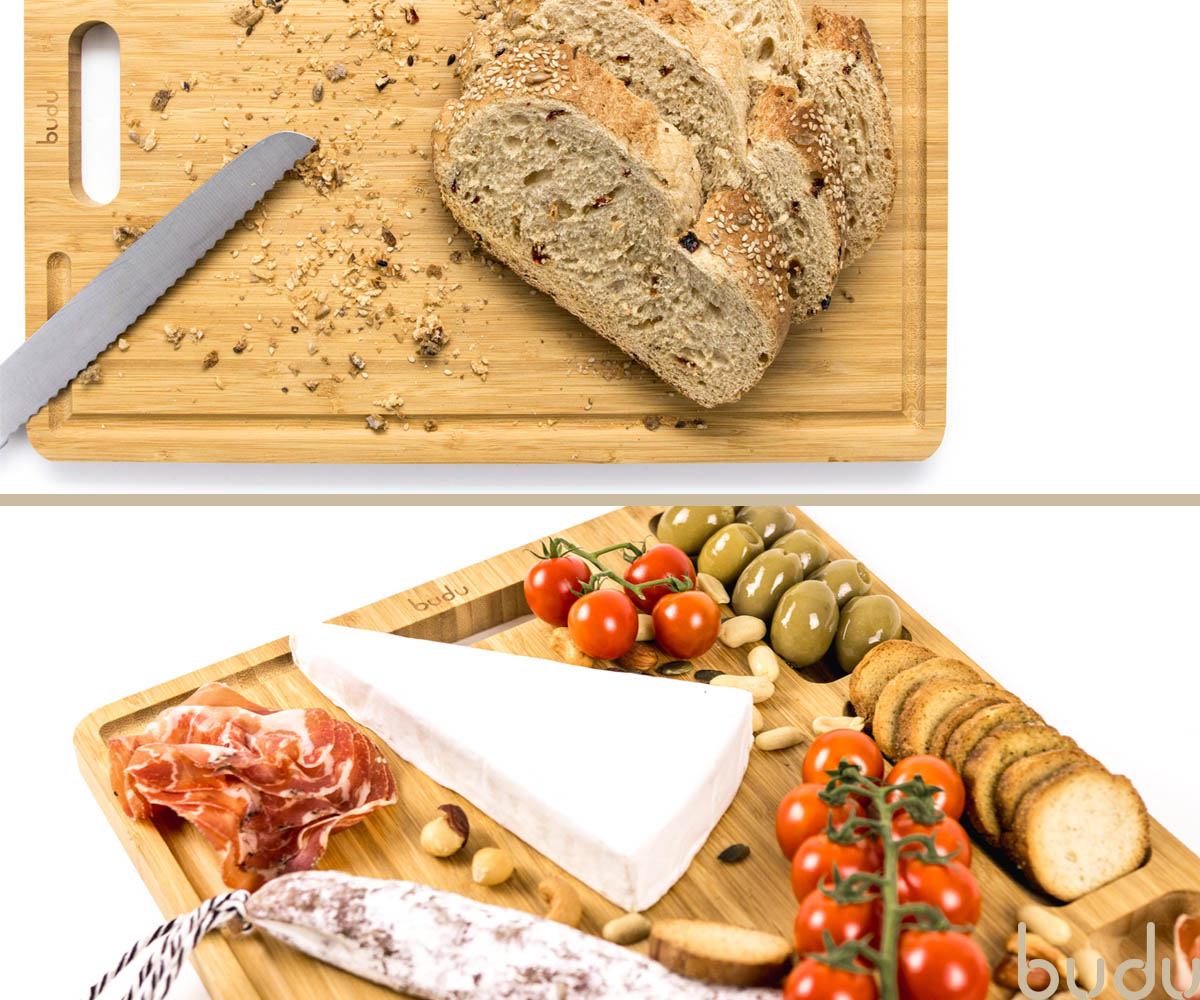 Allereerst is de Budu Borrelplank te gebruiken als borrelplank. Het formaat en 3 bakjes maken de plank zeer geschikt als borrel- of serveerplank. Daarnaast is de plank te gebruiken als snijplank of vleesplank.