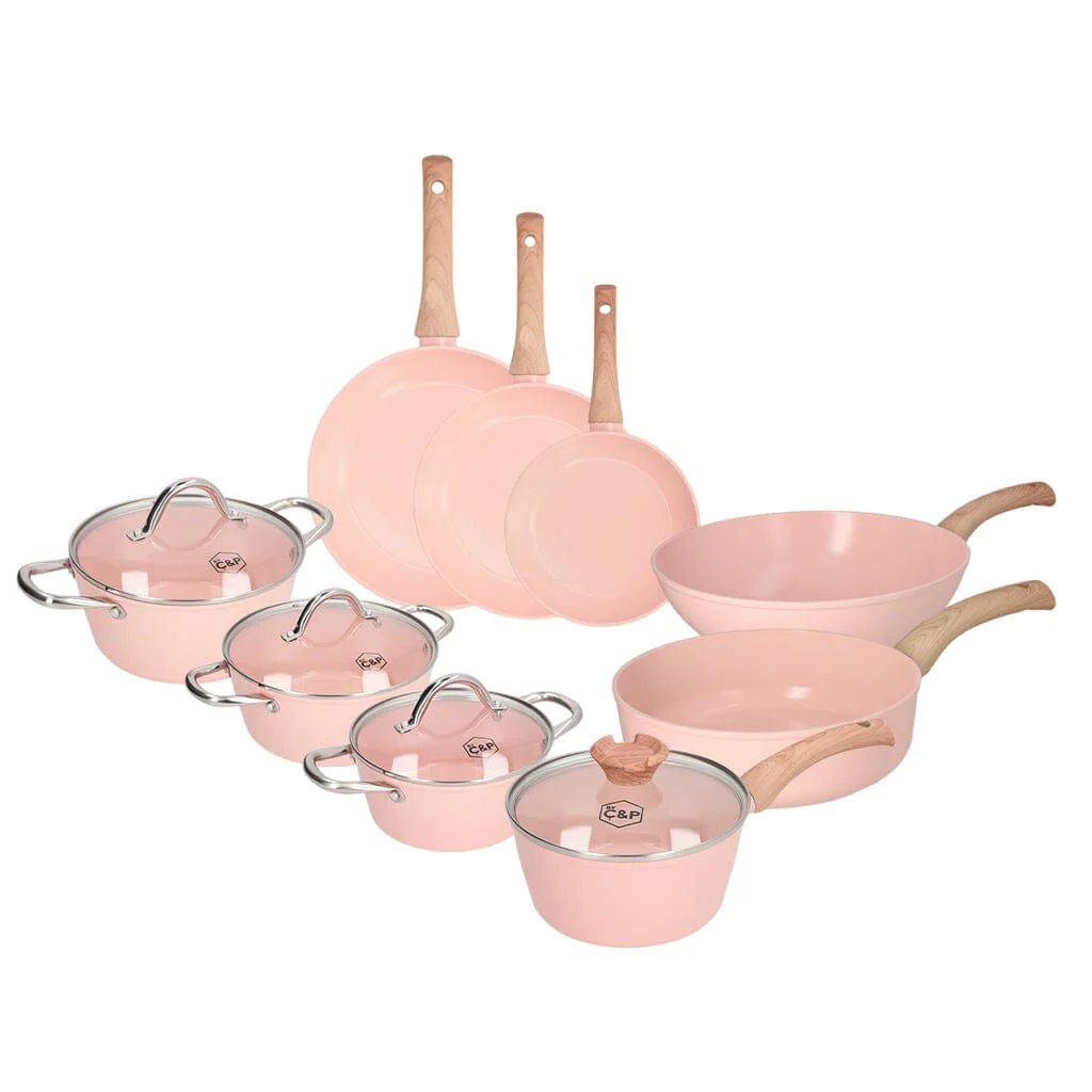 Onze favoriete eigenschappen van de roze pannenset op een rij