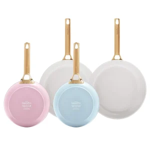 De pannen zijn gemaakt van aluminium en hebben een GreenShield™ keramische antiaanbaklaag. Zo bak je gezonder en makkelijker, zonder gedoe.