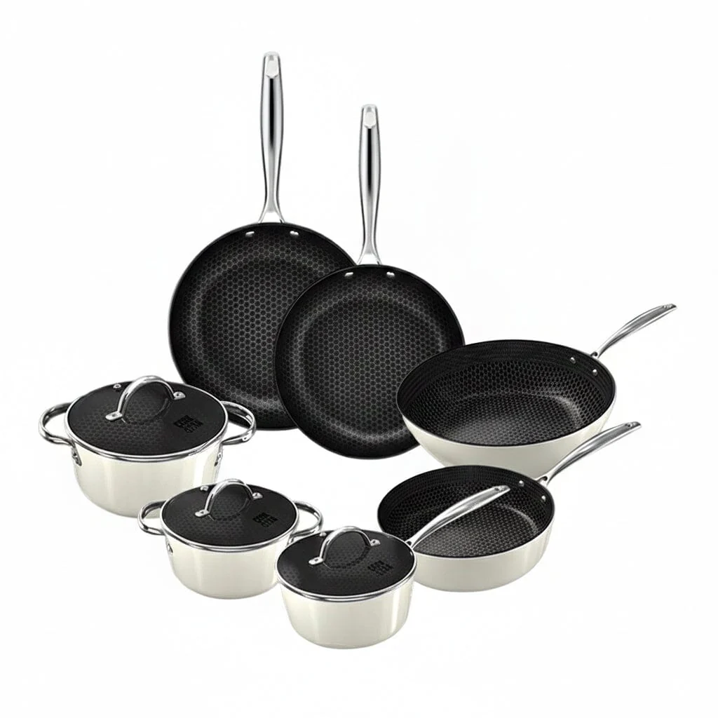 Bestel vandaag nog jouw Go Ivory Honey 7-delige pannenset en ervaar hoe elegant design, kracht en gebruiksgemak samenkomen in één stijlvolle lijn, de perfecte keuze voor elke moderne keuken.