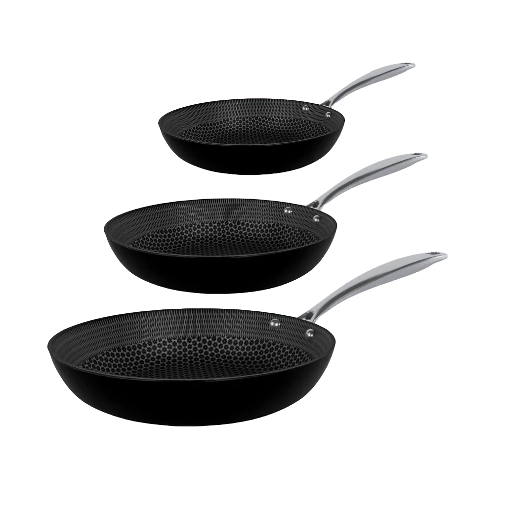 - Set bevat: koekenpannen van 20 cm, 24 cm en 28 cm