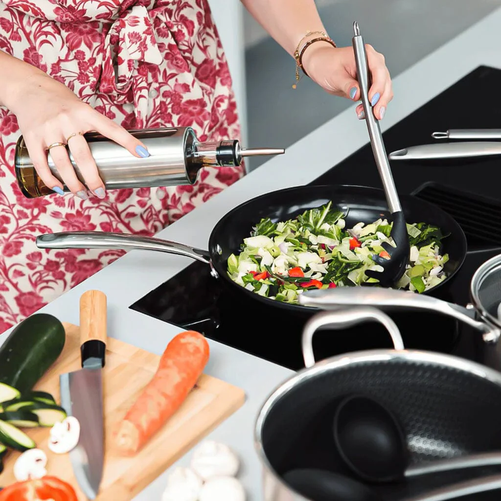 De Go Signature 2-delige koekenpannenset is het perfecte cadeau voor wie houdt van stijlvol en professioneel koken. Met zijn moderne zwarte look en RVS-details past hij in elke keuken.
