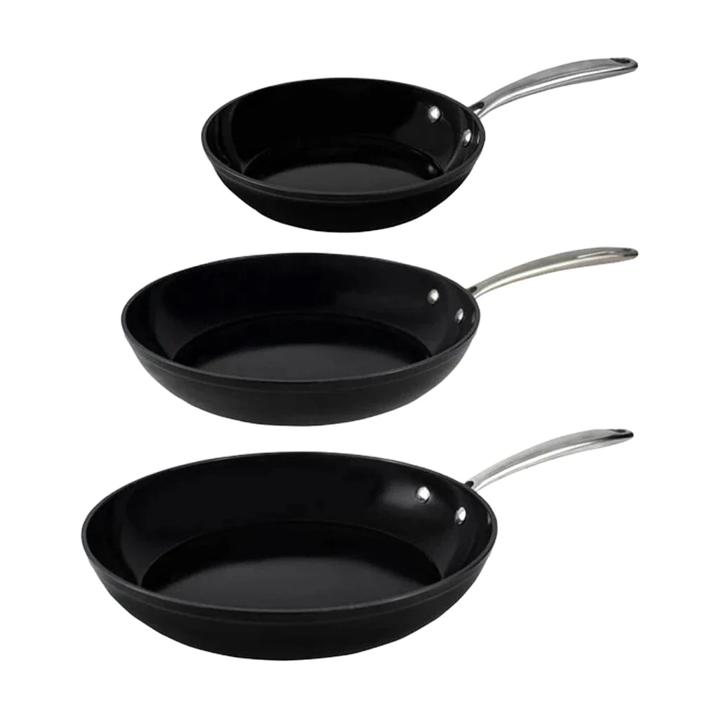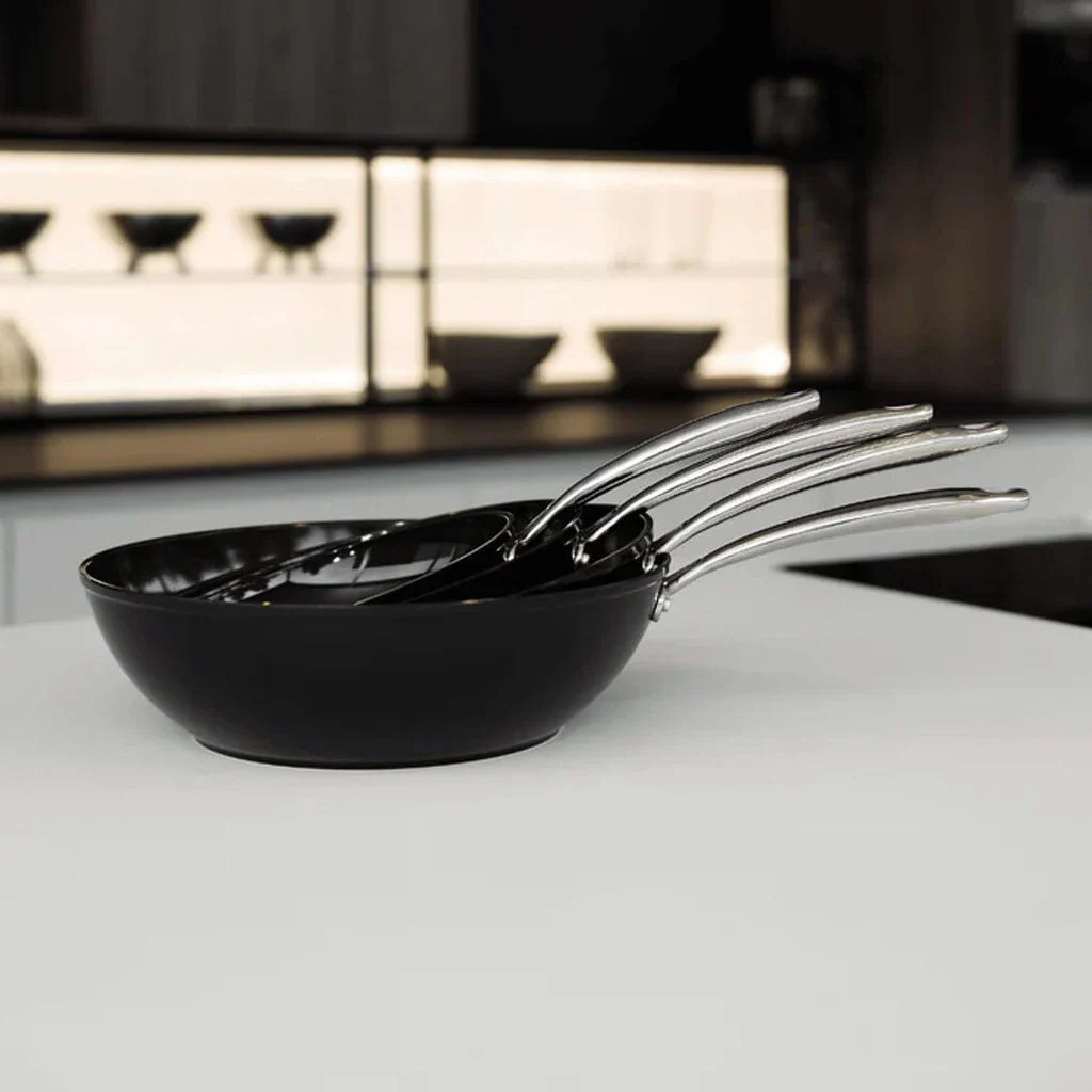 De Go Signature 3-delige koekenpannenset is het perfecte cadeau voor kookliefhebbers. De combinatie van zwarte elegantie, RVS-handgrepen en hoogwaardige kwaliteit maakt deze set een echte blikvanger in elke keuken.