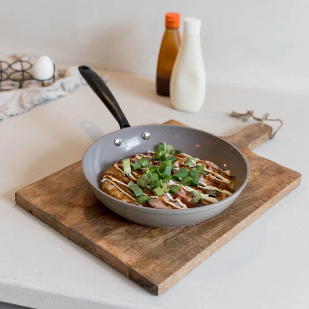 Een tip van de chef: gebruik de Taupe of Mind pannen voor alles van een malse steak tot luchtige pannenkoeken of perfect gebakken zalm. De keramische coating garandeert telkens weer een gelijkmatige garing en een heerlijk resultaat.