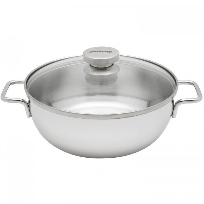 De pan is gemaakt van 7-PlyMaterial waarbij o.a. roestvrijstaal en aluminium gebruikt zijn voor een optimale warmteverdeling tot aan de rand van de pan.