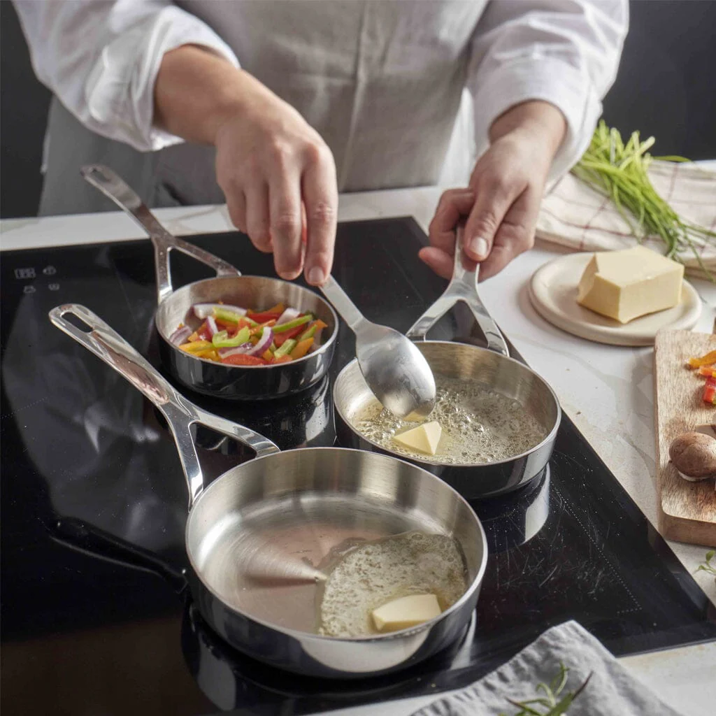 Een mooi bakresultaat voor een kleine portie of een garnituur? Dit Mini Koekenpannetje (12 cm) van Demeyere gemaakt van meerlagenmateriaal tot aan de rand is een ideale assistent in de keuken.