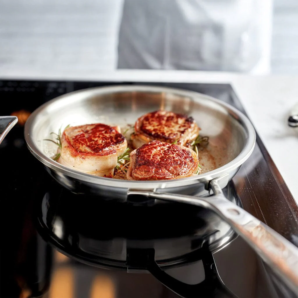 De unieke 7-lagenconstructie vormt het hart van deze pan. Het bestaat uit een binnenlaag van hoogwaardig 18/10 roestvrij staal, meerdere aluminiumlagen voor een snelle en gelijkmatige opwarming en een duurzame buitenlaag die zorgt voor een stralende afwerking. Dankzij de naadloze verbinding van alle lagen tot aan de rand ontstaan er geen hotspots, waardoor je gerechten overal perfect garen. Dit resulteert in een efficiënte en professionele kookervaring, waarbij elke maaltijd consistent en optimaal wordt bereid.