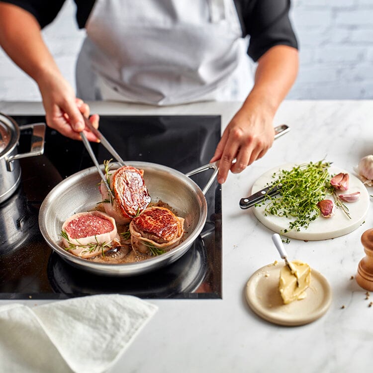 Met de Silver 7 Koekenpan 28 cm van Demeyere maak je eenvoudig een malse kippendij, een perfect gebakken tonijnsteak of heerlijk gekarameliseerde spruitjes. Dankzij de 7-lagenconstructie en Silvinox® technologie blijft deze pan altijd zilverwit en is hij eenvoudig schoon te maken. Bovendien kook je op inductie tot wel 30% sneller, efficiënter en met meer controle dankzij de TriplInduc® technologie.