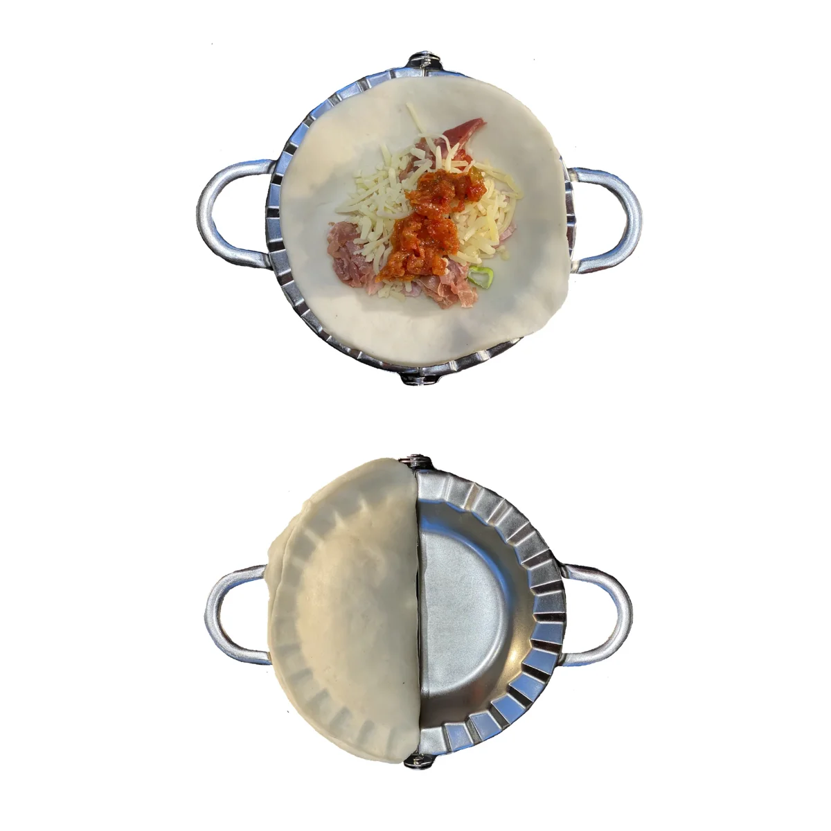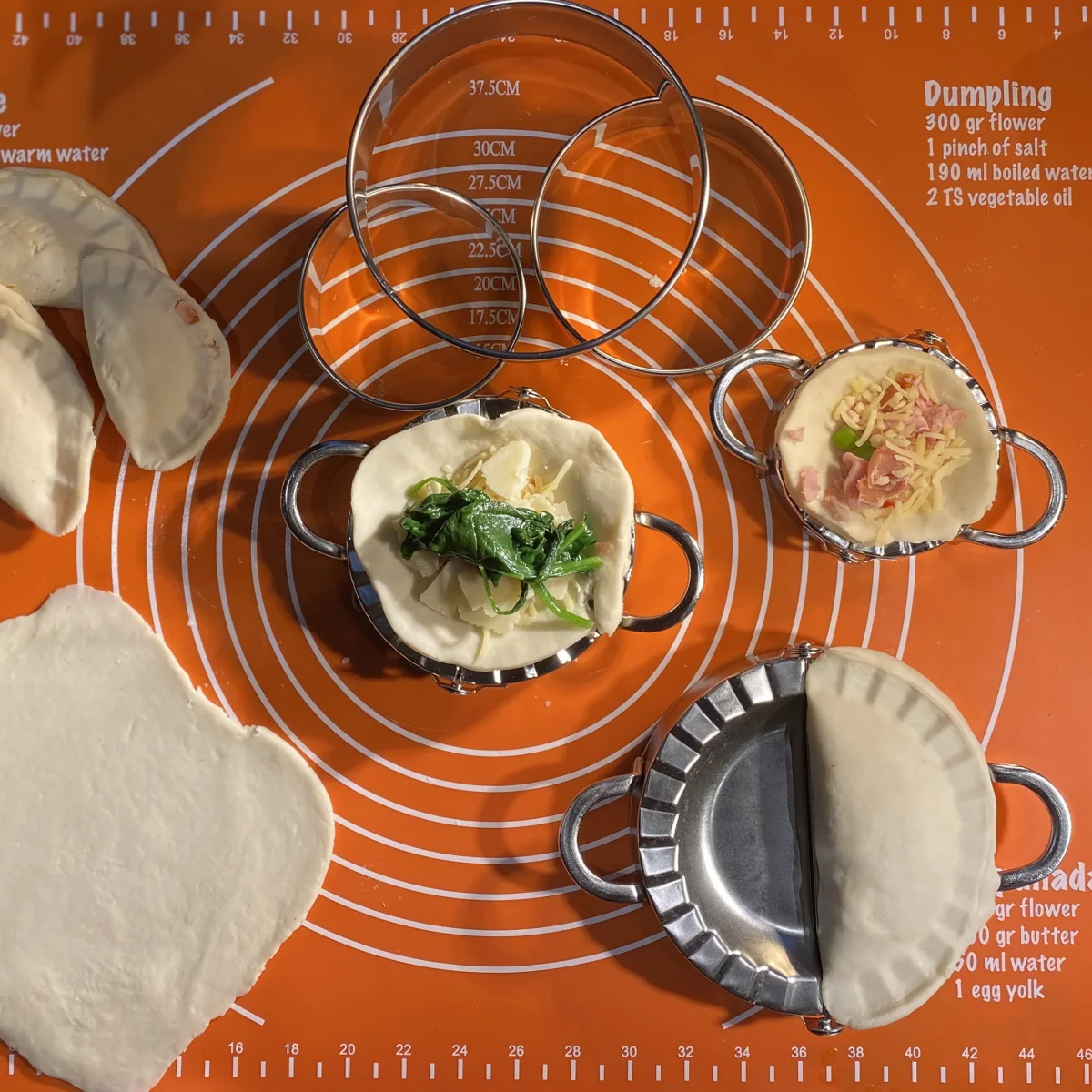 - Druk het deeg zodat er een dumpling/ravioli word gevormd