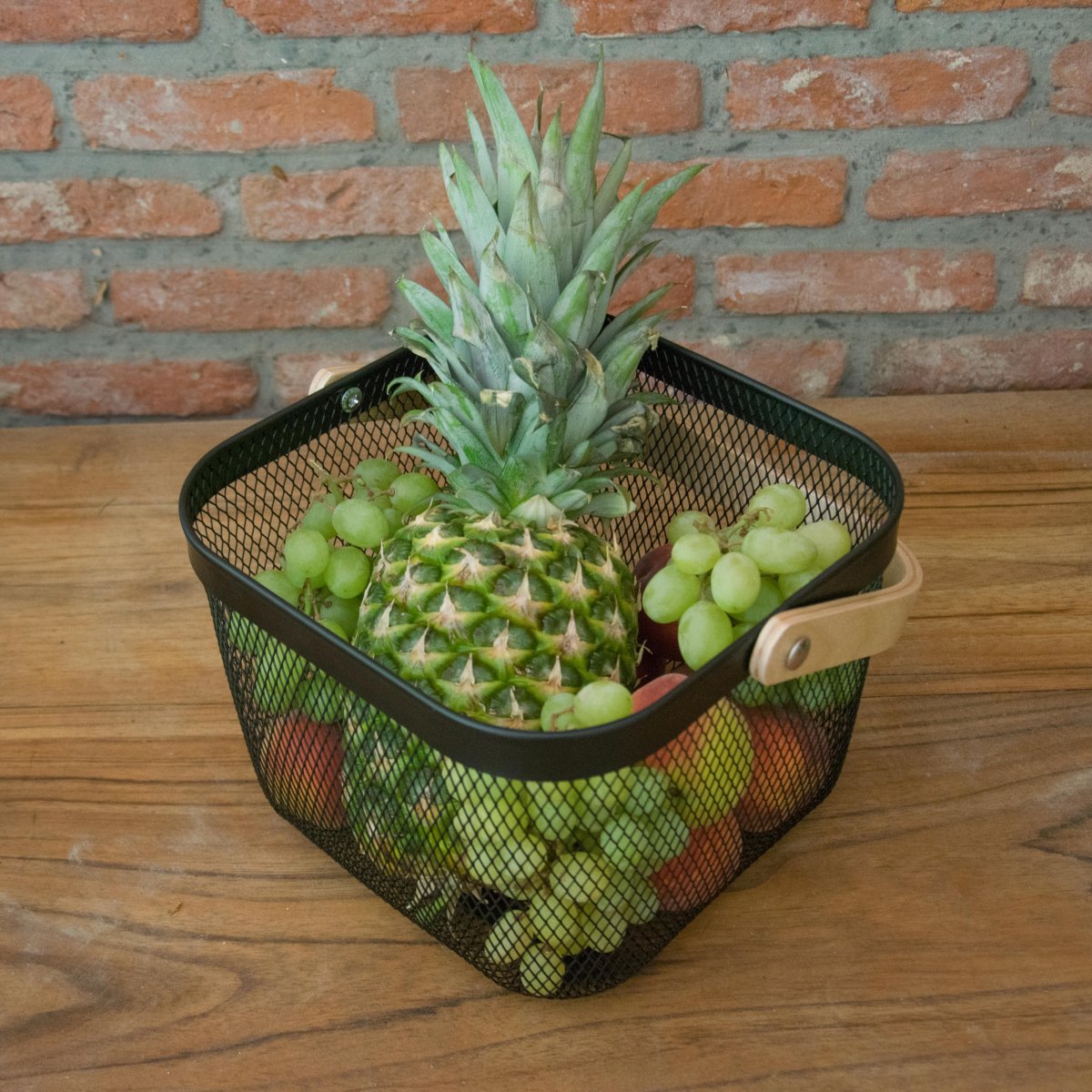 Deze vierkante fruitmand van Chefs Cuisine is vervaardigd uit gepoedercoat staal met houten handvat, zorgt voor een mooi en strak design én is een ruimtebesparende opslagoplossing in uw huis of tijdens een dagje uit.