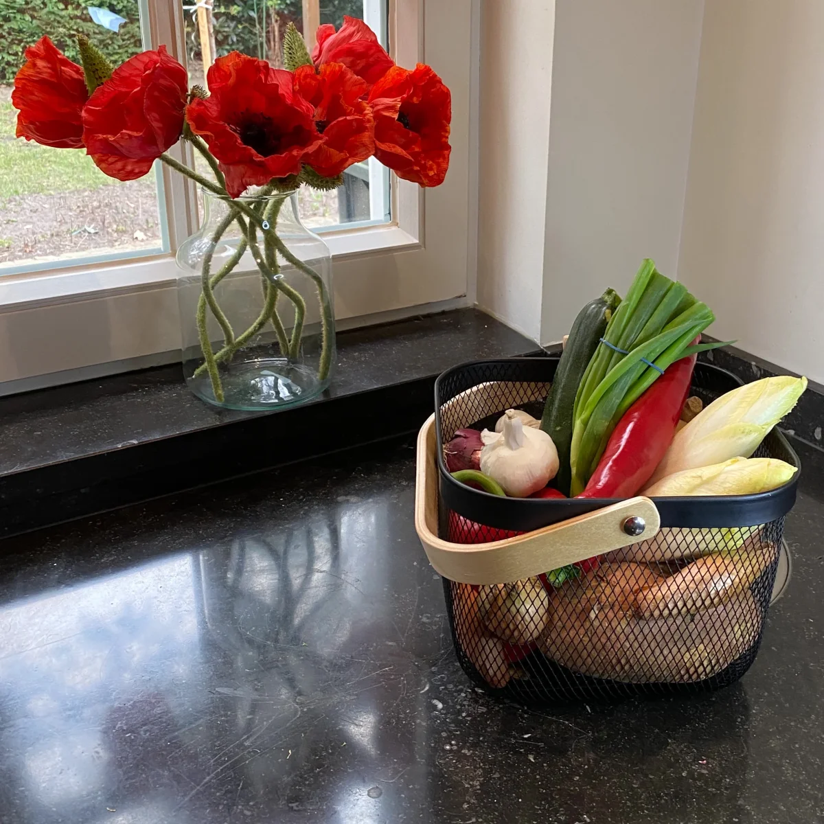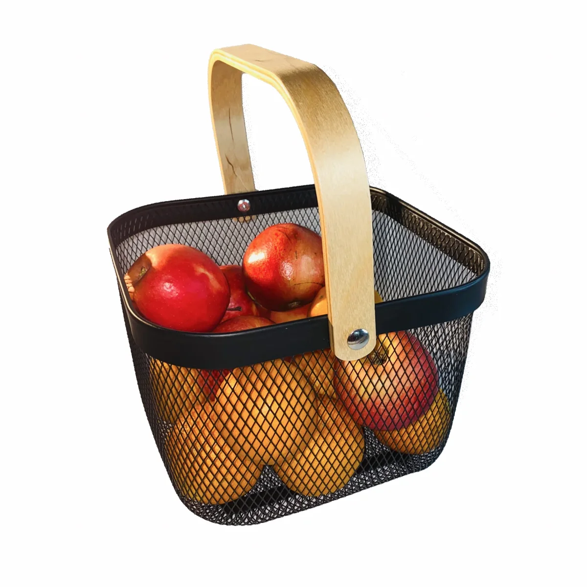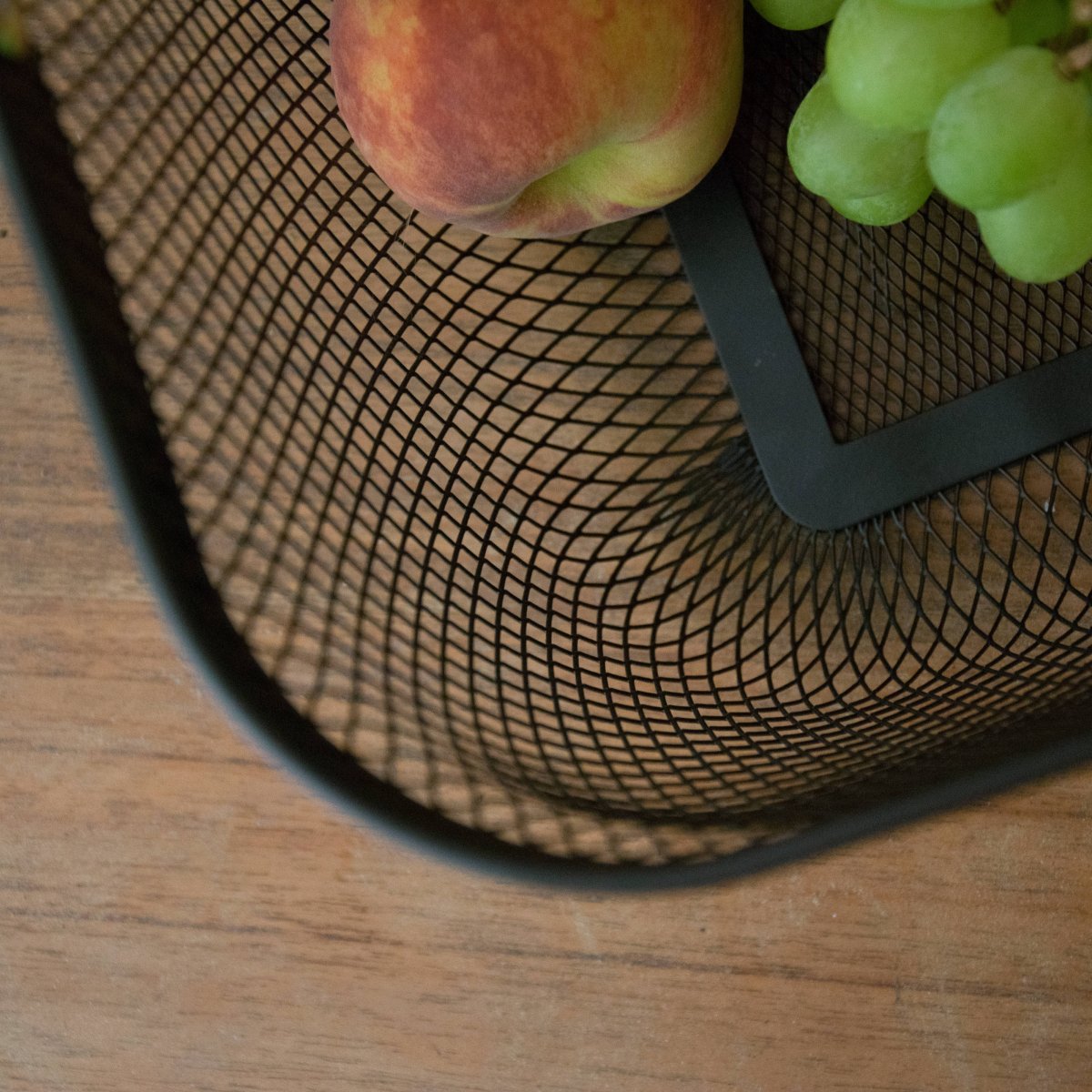 De mand is functioneel met decoratieve toets en tegelijkertijd licht en transparant. Deze kan gebruikt worden als fruitmand, groentemand, picknickmand,… Door het rasterwerk kan de lucht circuleren, zodat uw voeding langer vers blijft.