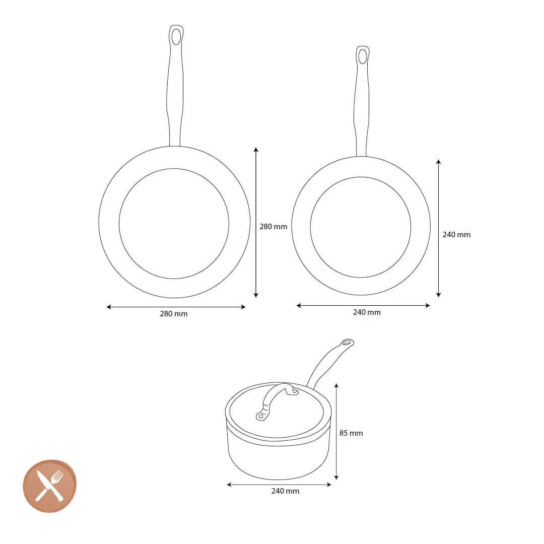 Om de levensduur van de pannen te verlengen, raden we aan om ze met de hand te reinigen met een mild schoonmaakmiddel en een zachte spons. Hoewel de pannen vaatwasserbestendig zijn, blijft de anti-aanbaklaag langer optimaal bij handmatig reinigen. Vermijd scherpe gereedschappen en oververhitting, en gebruik keukengerei van siliconen, hout of nylon om de coating te beschermen.