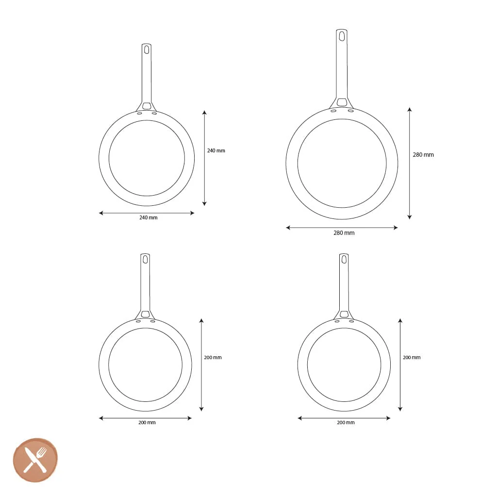 • Materiaal: (ge)anodiseerd aluminium met versterkte Thermolon keramische antiaanbaklaag, PFAS-vrij sinds 2007.