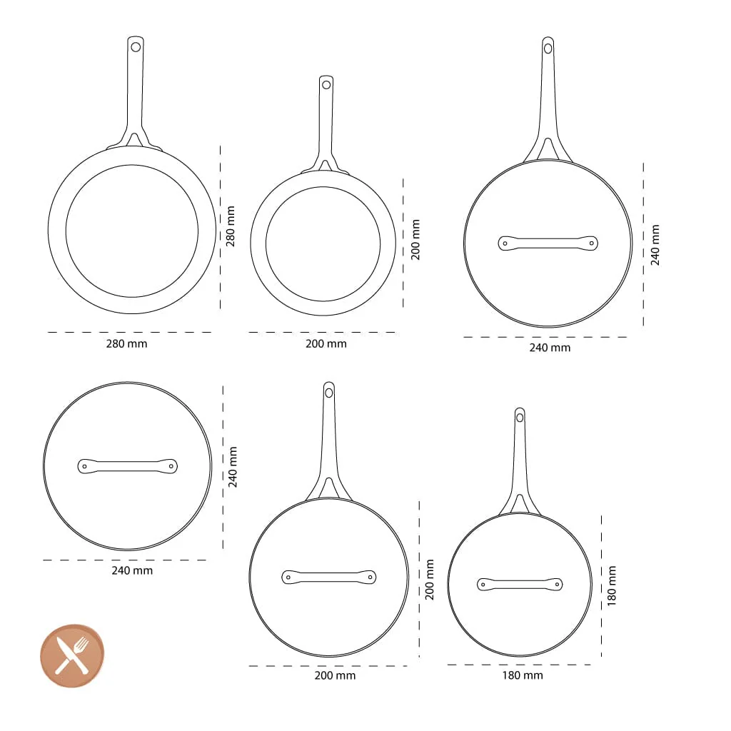 - Materiaal: Aluminium, met een keramische antiaanbaklaag versterkt met diamanten voor optimale prestaties en duurzaamheid.