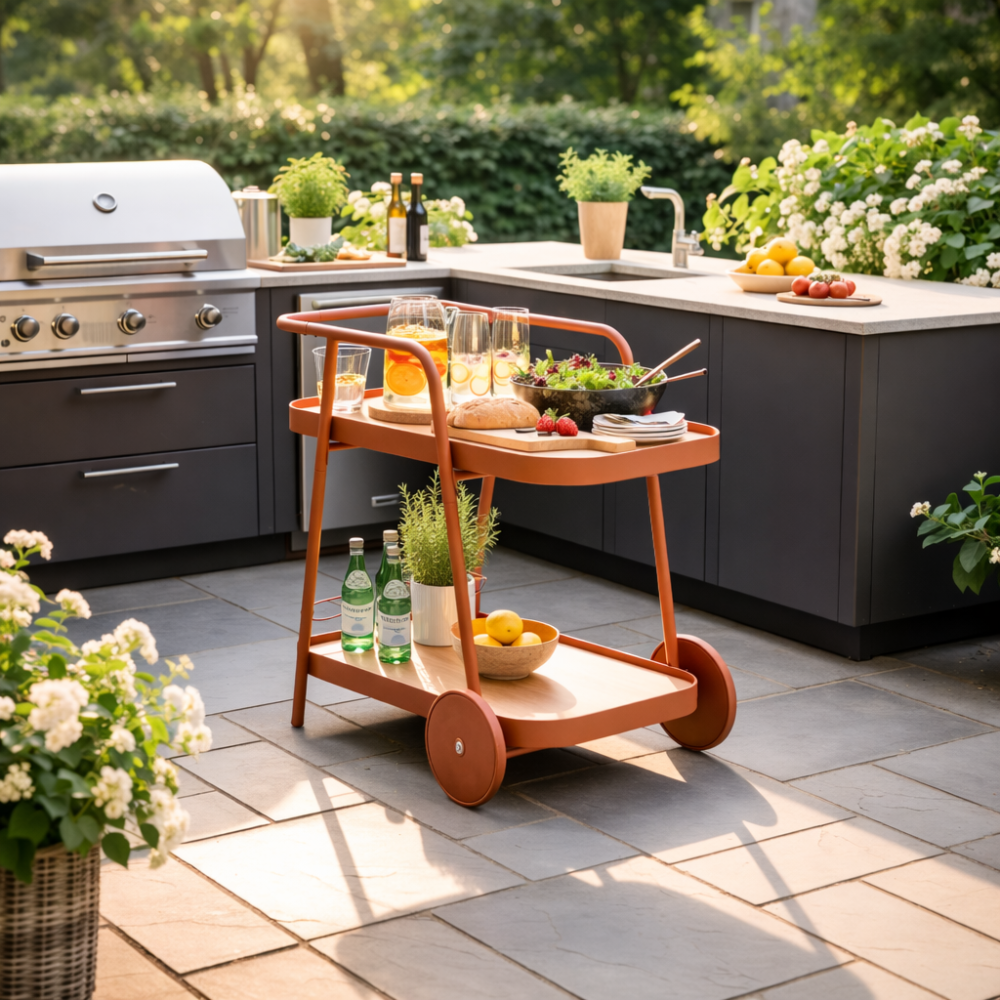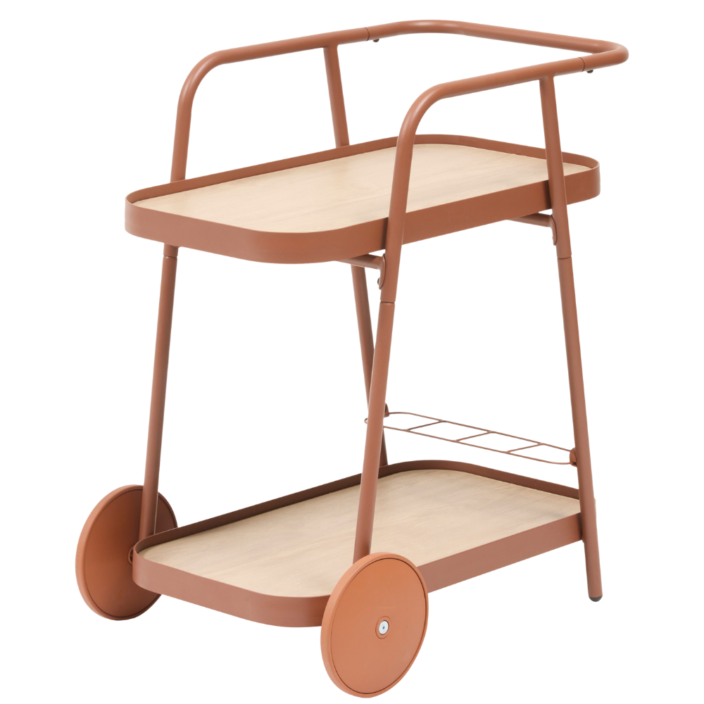 Creëer extra gemak en stijl in je interieur of buitenruimte met de Hesperide Serveerwagen LORENA. Deze praktische keukentrolley combineert een modern design met functionaliteit. Dankzij het stevige metalen frame en de warme oranje afwerking geeft deze trolley een stijlvolle uitstraling aan je keuken, woonkamer, balkon of terras.