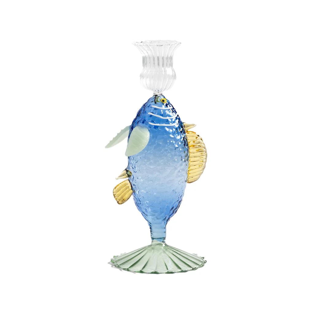 Laat je interieur sprankelen met de &Klevering Kandelaar Vis Blauw, een unieke en met de hand gemaakte kunstzinnige kandelaar die direct een zomers gevoel oproept. Gemaakt van hoogwaardig borosilicaatglas en met de hand afgewerkt, is elke kandelaar een klein kunstwerk op zich. Het speelse design in de vorm van een vis maakt deze kandelaar een echte blikvanger, perfect om een warme en gezellige sfeer te creëren tijdens lange avonden.