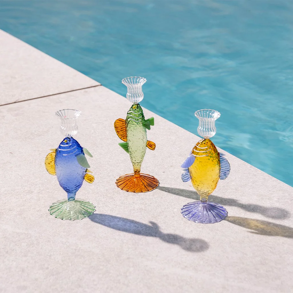 Of je nu een zomerse sfeer wilt creëren of gewoon op zoek bent naar een speels en stijlvol woonaccessoire, deze kandelaar past moeiteloos in verschillende interieurstijlen. Perfect voor de eet- of woonkamer, als decoratief element op een dressoir of als een origineel cadeau voor designliefhebbers.
