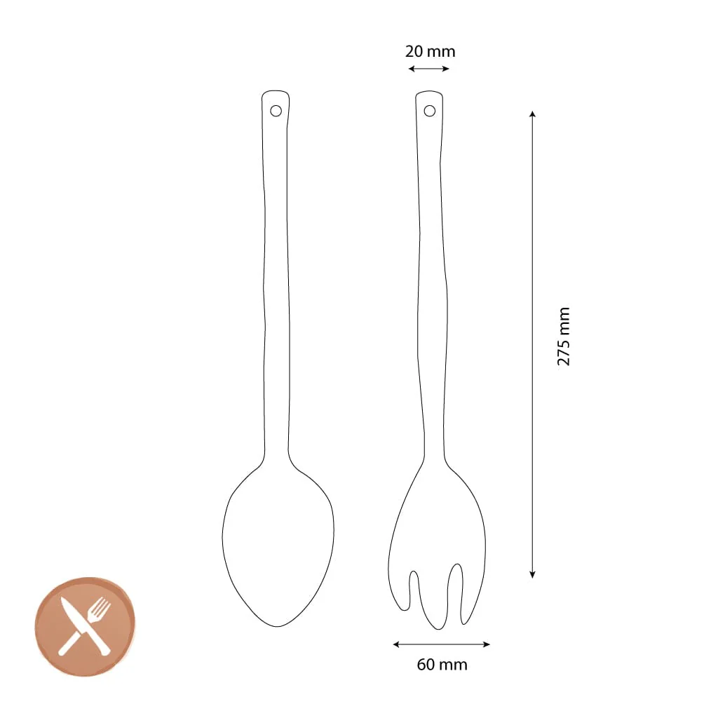 Geschikt voor het serveren van salades en bijgerechten bij dagelijks gebruik of tijdens diners. Reinig het bestek na gebruik met warm water en een mild afwasmiddel. Indien vaatwasserbestendig: plaats bij voorkeur op een lage temperatuur om de kleur en afwerking zo lang mogelijk mooi te houden. Vermijd schurende reinigingsmiddelen om beschadiging te voorkomen.