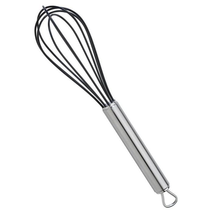 De Küchenprofi ballongarde is gemaakt van roestvrij staal met zwarte siliconen draden en heeft