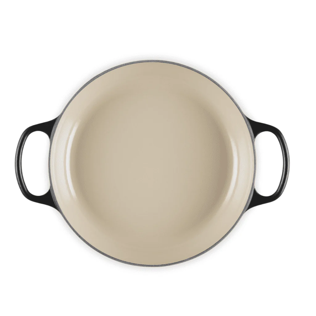 - Binnenzijde: Zwart geëmailleerde binnenkant – ideaal voor hoge temperaturen, bruinen, bakken en karamelliseren.