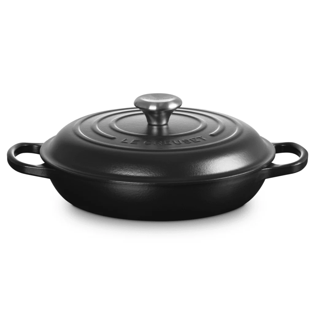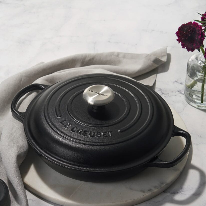 Met de Le Creuset Campagnard 26 cm in Mat Zwart voeg je kracht, precisie en Franse klasse toe aan je keuken – klaar voor elke culinaire uitdaging.