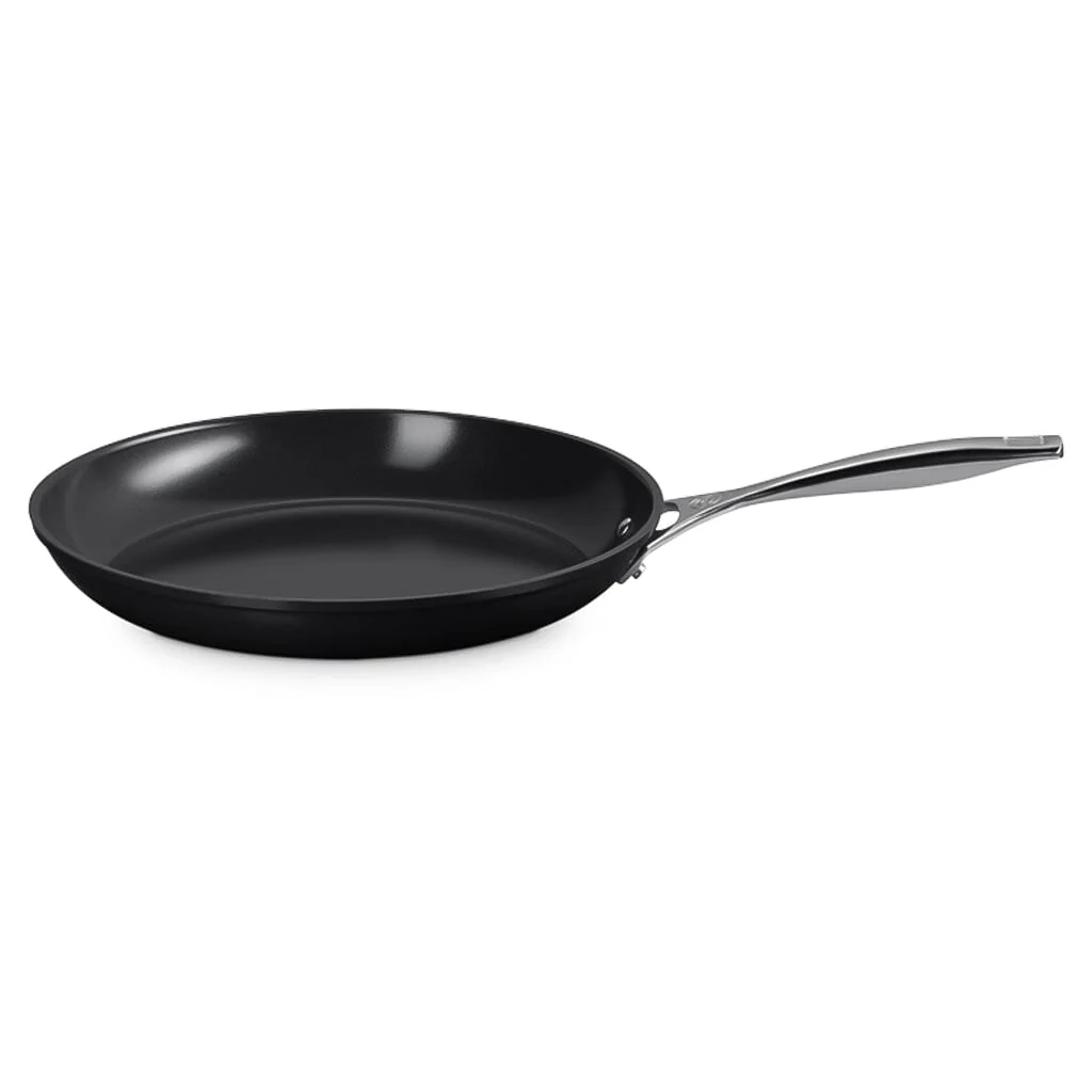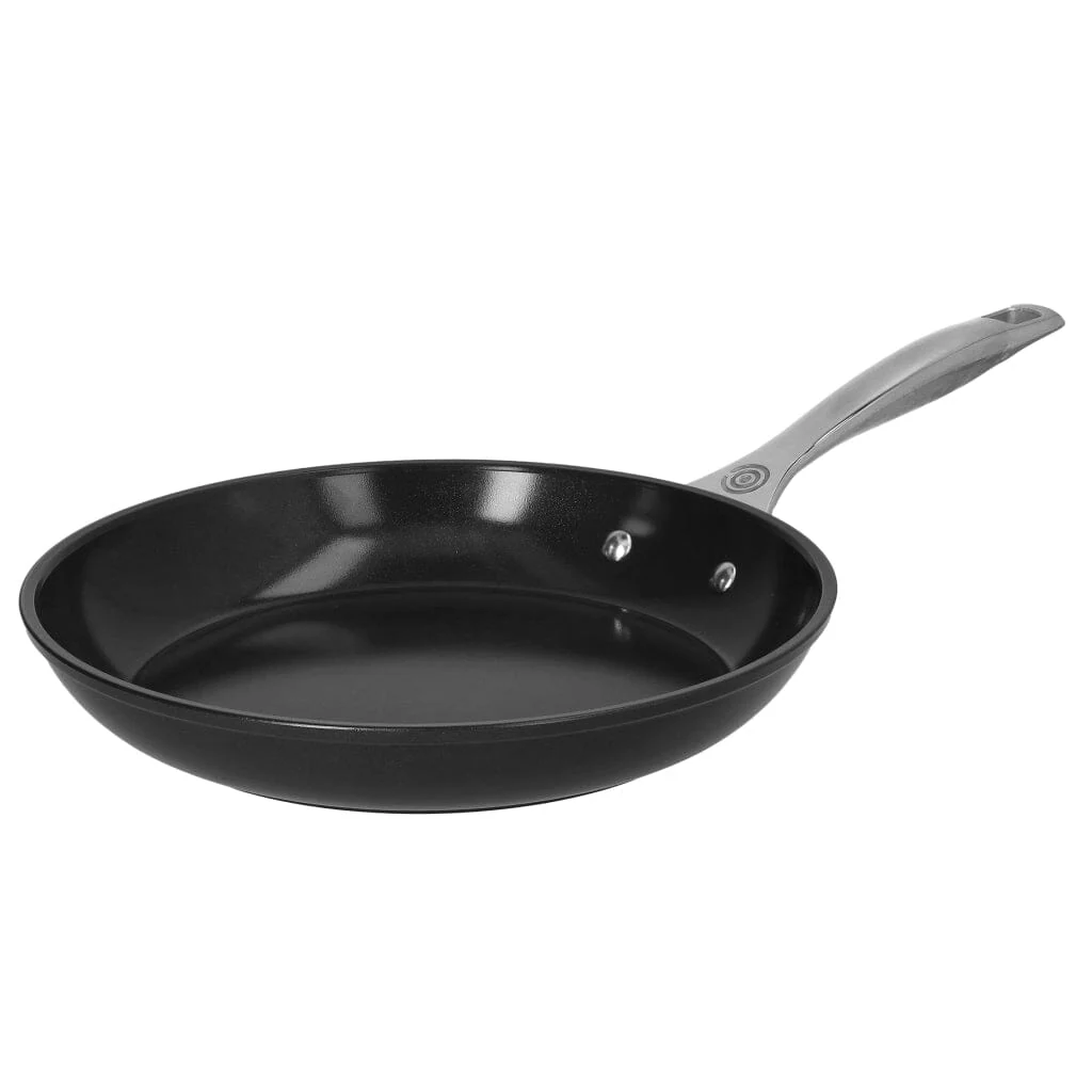 Met de Essential Non-Stick Ceramic Koekenpan 26 cm van Le Creuset bereid je moeiteloos een omelet, sappige kipfilet of knapperige groenten – met weinig tot geen olie. Dankzij de zware gesmede aluminium kern en de geavanceerde keramische coating, gemaakt zonder PFAS, verdeelt deze pan de warmte perfect en behoudt hij die ook optimaal. Zo kook je niet alleen gelijkmatig, maar ook gezonder.