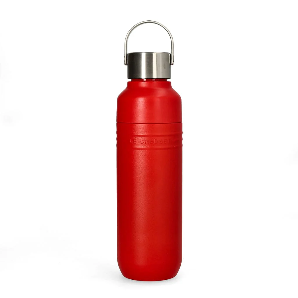 Blijf gehydrateerd in stijl met de Le Creuset Drinkfles On The Go 0,5L in de prachtige kleur Kersenrood. Deze geïsoleerde fles is perfect voor onderweg en houdt je drankjes urenlang warm of koud. De dubbelwandige vacuümisolatie zorgt ervoor dat je dranken op de juiste temperatuur blijven, terwijl de kleurrijke coating krasbestendig is en langdurig mooi blijft. Dankzij het slimme ontwerp met een deksel dat tevens als ingebouwde beker functioneert, is deze fles een praktische en stijlvolle keuze voor dagelijks gebruik.