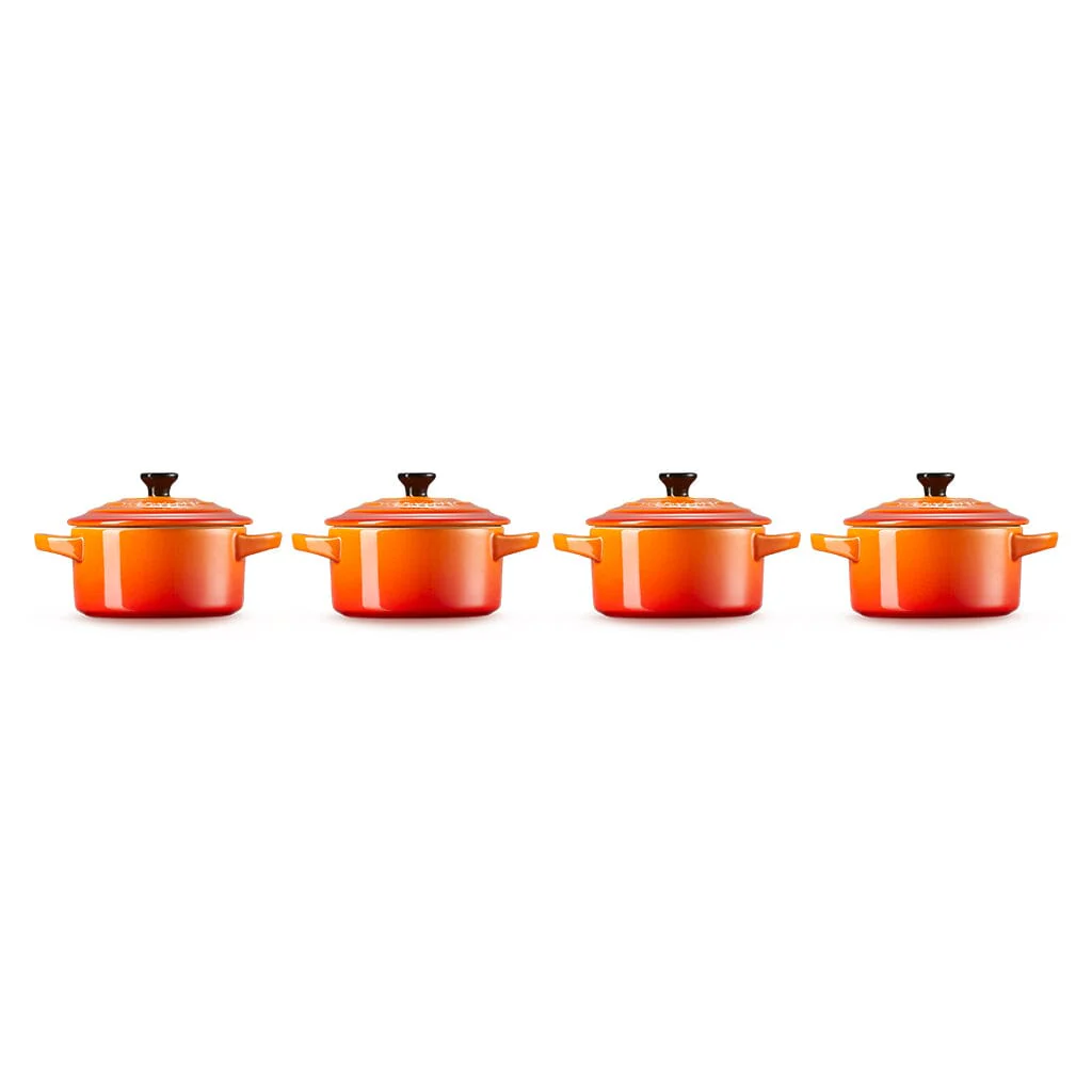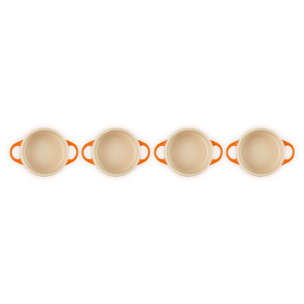 Breng kleur en charme op tafel met deze set van vier mini-braadpannen van Le Creuset. Vervaardigd uit hoogwaardig aardewerk en afgewerkt in het iconische Oranjerood, zijn deze kleine pannen perfect voor het serveren van hapjes, desserts, voorgerechten of snacks. Dankzij hun compacte formaat zijn ze niet alleen functioneel, maar ook onweerstaanbaar schattig.
