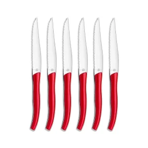 De set bestaat uit zes prachtig vormgegeven steakmessen, elk met een vlijmscherp lemmet van hoogwaardig roestvrij staal. Het lemmet snijdt moeiteloos door sappige steaks, gegrilde kip en andere smakelijke stukken vlees. Dankzij de hoogwaardige materialen zijn deze messen duurzaam en behouden ze hun scherpte langdurig.