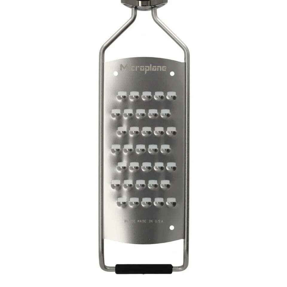 Maak kennis met de ultieme keukenhulp – de Gourmet Rasp extra grof van Microplane. De rasp is perfect voor het grof raspen van kaas, groenten of andere producten, perfect voor over een authentieke pasta of frisse salade. Gourmet-serie heeft een uitgebreide lengte met ruime snij/rasp oppervlakken en in de VS gemaakte roestvrijstalen messen.