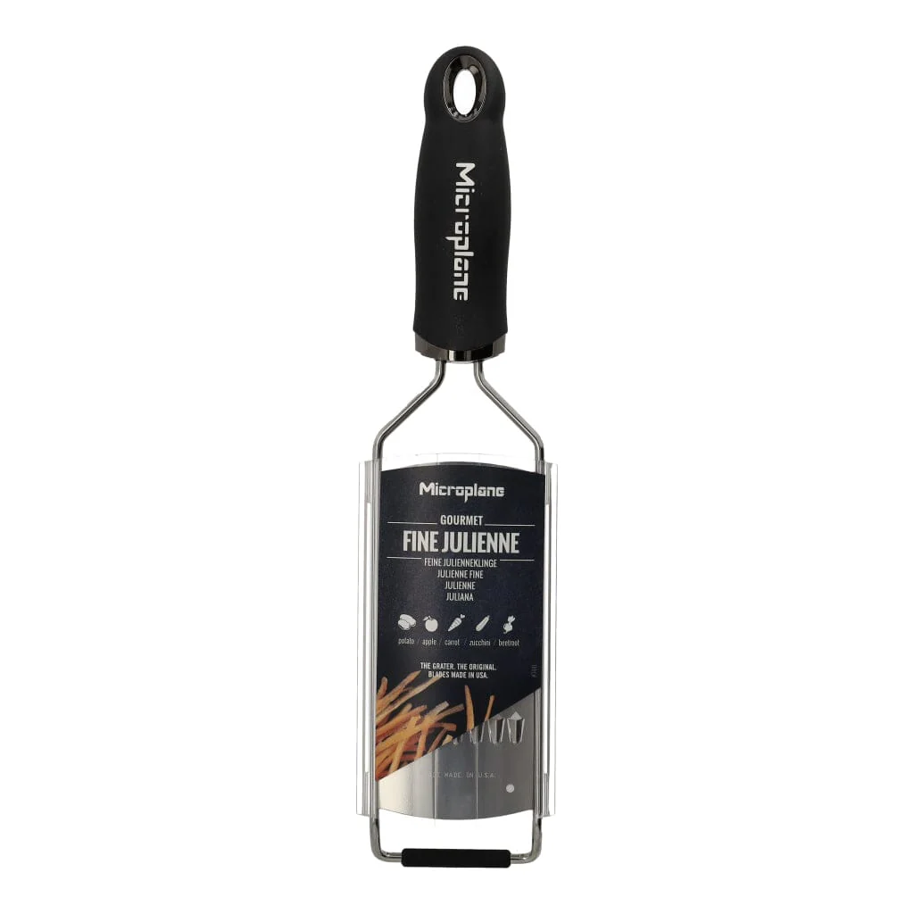 Maak kennis met de ultieme keukenhulp – de Rasp julienne van Microplane. Of je nu zachte kaas raspt voor een heerlijke pasta, citruszest toevoegt aan je favoriete dessert, of verse groenten verwerkt voor een gezonde salade, onze rasp staat garant voor uitmuntende prestaties en precisie. De Microplane Gourmet-serie heeft een uitgebreide lengte met ruime snij/rasp oppervlakken en in de VS gemaakte roestvrijstalen messen.