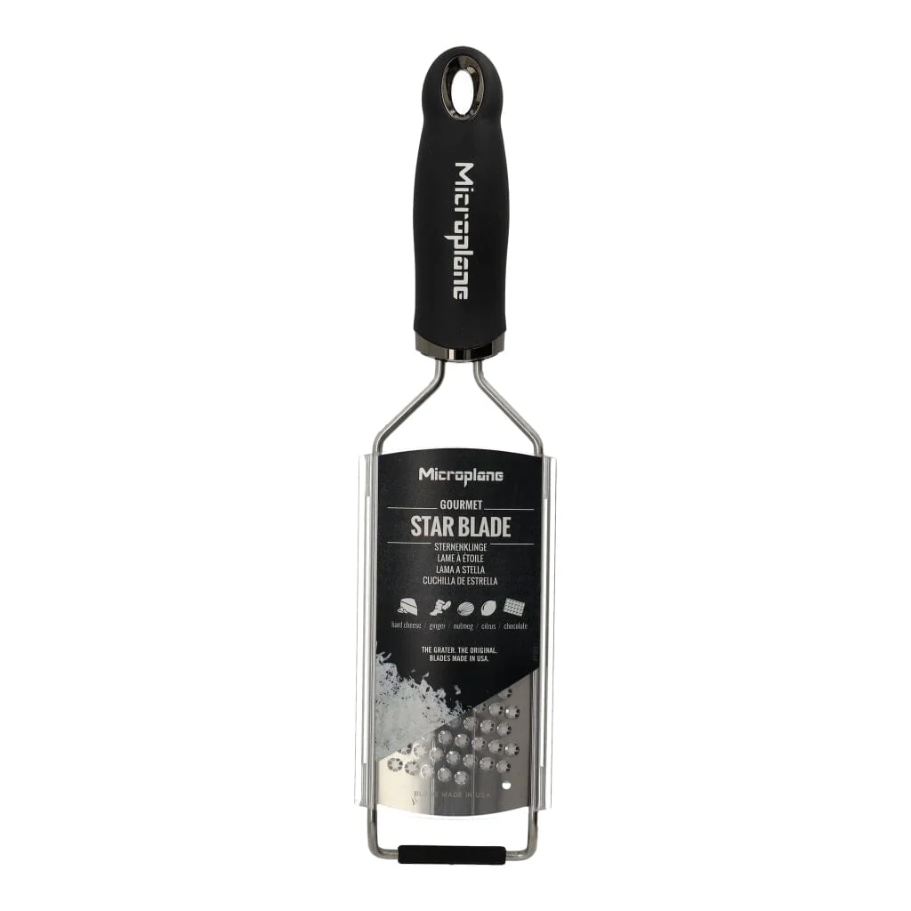 Maak kennis met de ultieme keukenhulp – de Gourmet Rasp Fijn Ster van Microplane. Perfect voor het fijnraspen van Parmezaanse kaas over een heerlijke pasta. De Microplane Gourmet-serie heeft een uitgebreide lengte met ruime snij/rasp oppervlakken en in de VS gemaakte roestvrijstalen messen.