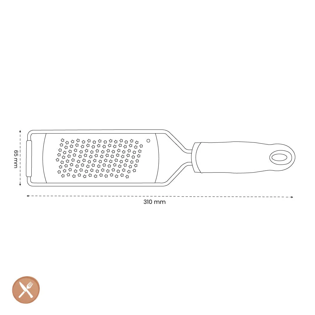 - Stabiele anti-slip basis: Voorzien van een anti-slip basis voor extra stabiliteit tijdens het raspen. De basis van de rasp is licht gebogen voor ultiem gebruiksgemak.