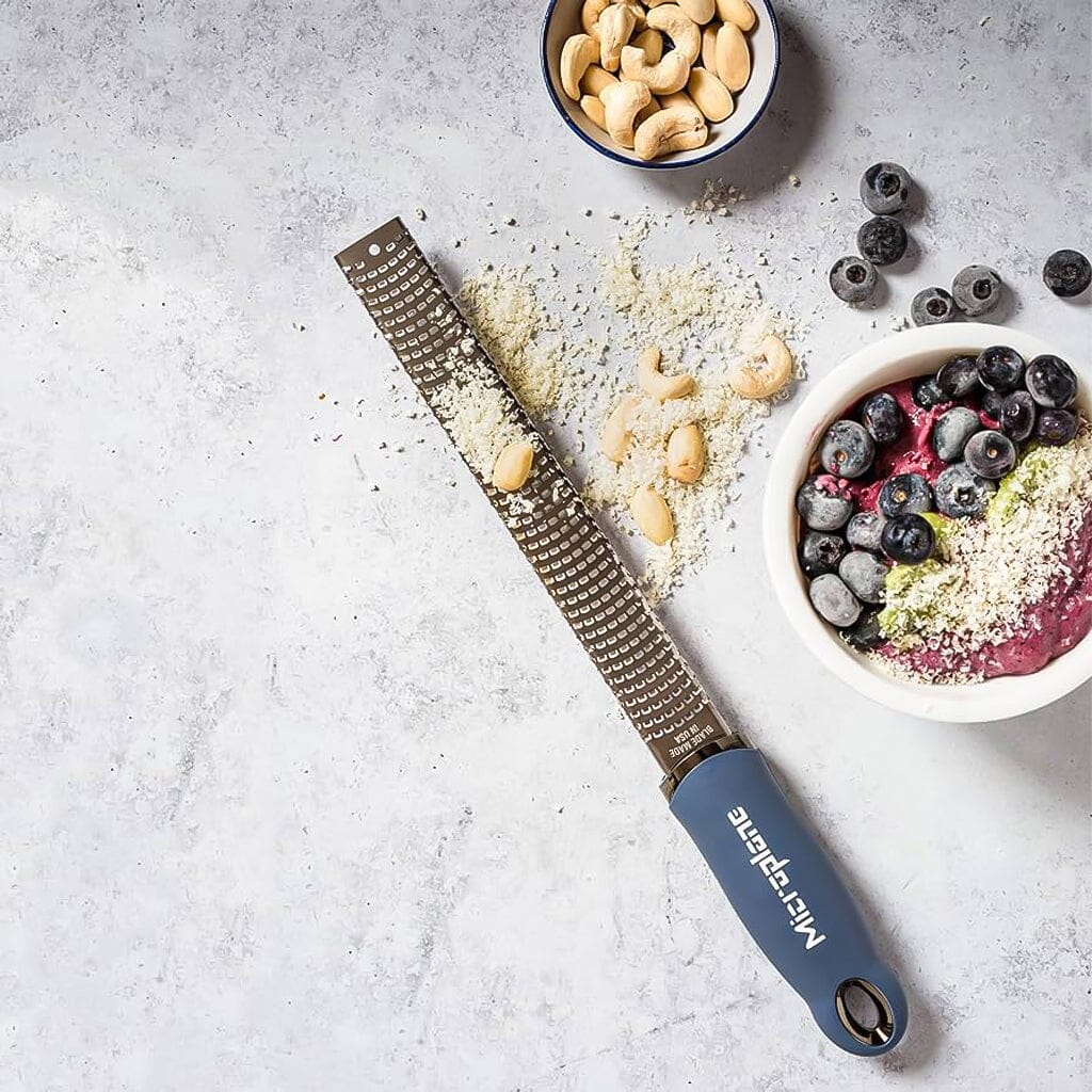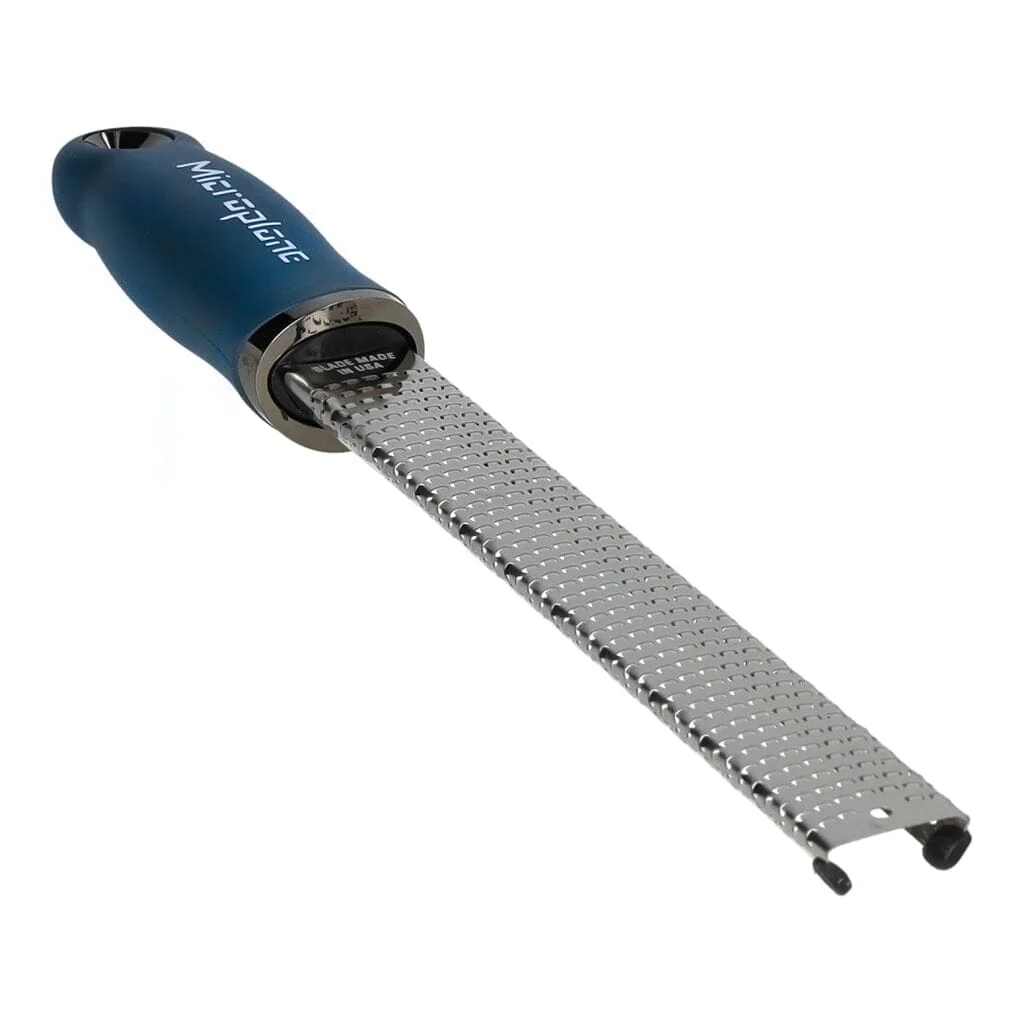 Maak kennis met de ultieme keukenhulp – de Premium Classic Rasp Zesteur Denim Blauw van Microplane. Deze rasp is perfect voor het fijn raspen van kaas over je favoriete pasta gerecht of voor het raspen van citrus schillen. De Premium Classic-serie van Microplane heeft een soft touch handvat en rubberen voetjes aan de onderkan van de rasp. De raspen van de Premium Classic serie worden wereldwijd door chefs gebruikt en zijn zelfs te zien op Televisie!