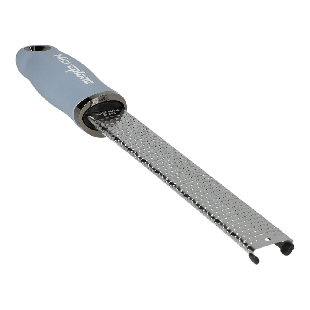 Maak kennis met de ultieme keukenhulp – de Premium Classic Rasp Zesteur Sky Blue van Microplane. Deze rasp is perfect voor het fijn raspen van kaas over je favoriete pasta gerecht of voor het raspen van citrus schillen. De Premium Classic-serie van Microplane heeft een soft touch handvat en rubberen voetjes aan de onderkan van de rasp. De raspen van de Premium Classic serie worden wereldwijd door chefs gebruikt en zijn zelfs te zien op Televisie!