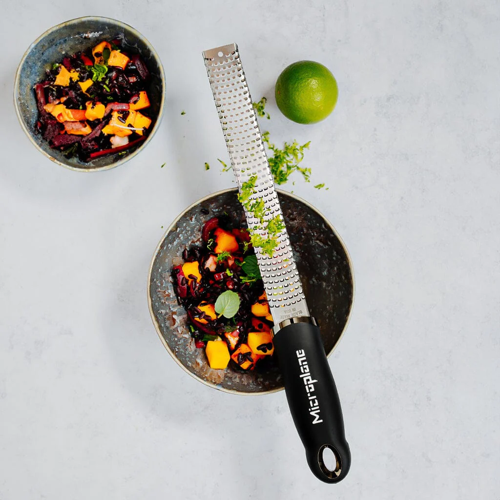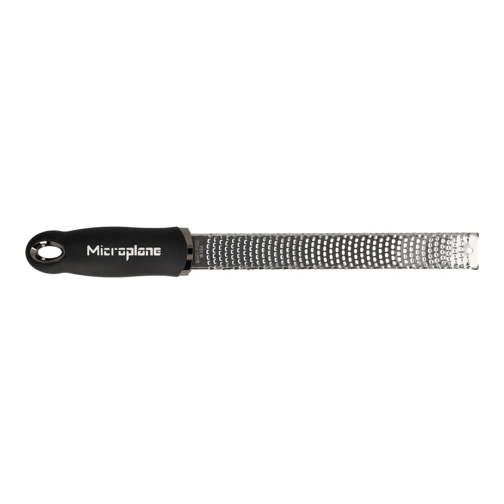 Maak kennis met de ultieme keukenhulp – de Premium Classic Rasp Zesteur Zwart van Microplane. Deze rasp is perfect voor het fijn raspen van kaas over je favoriete pasta gerecht of voor het raspen van citrus schillen. De Premium Classic-serie van Microplane heeft een soft touch handvat en rubberen voetjes aan de onderkan van de rasp. De raspen van de Premium Classic serie worden wereldwijd door chefs gebruikt en zijn zelfs te zien op Televisie!