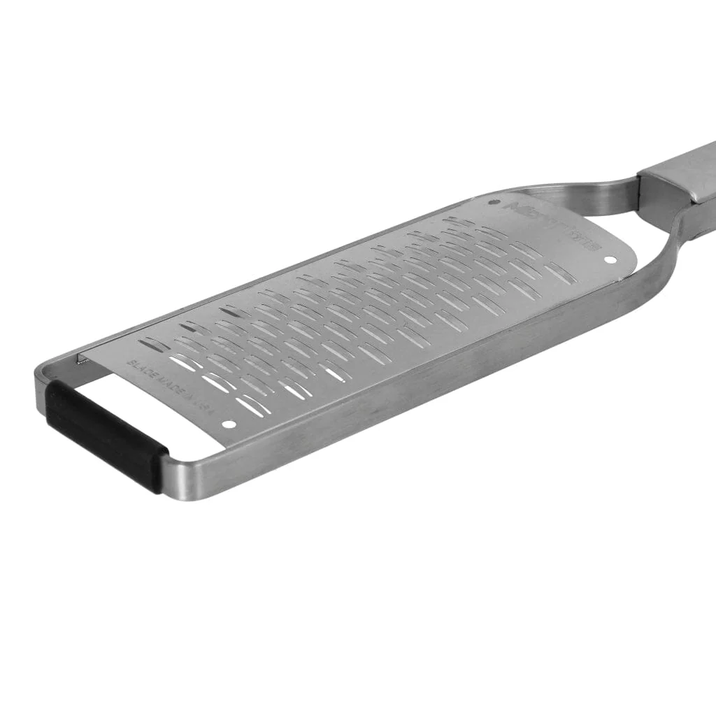 De Microplane Professional Medium Ribbon Rasp is perfect voor het raspen van zowel harde als zachte ingrediënten en levert brede, luchtige linten. Gebruik hem voor harde kazen zoals Parmezaan of Pecorino als topping op pasta, of voor zachte kazen zoals Cheddar in sauzen en ovengerechten. Groenten zoals wortelen, courgettes en kool worden moeiteloos fijngeraspt voor salades of roerbakgerechten, terwijl appels en peren ideaal zijn voor desserts en baksels. Daarnaast is de rasp geschikt voor chocolade, gember, knoflook en citrusvruchten, perfect voor desserts, hartige gerechten en cocktails.