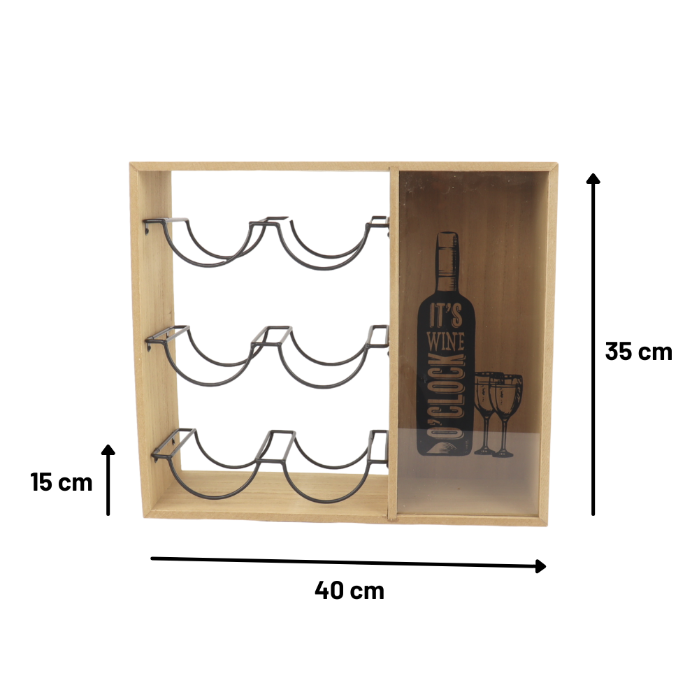 Deze Orange85 Wijnrek hout en staal is ideaal om al je flessen wijn op een mooie manier tentoonstellen. De afmetingen van dit wijnrek zijn 40 x 15 x 35 cm. In dit wijnrek kunnen totaal 6 flessen. Bij dit houten wijnrek zitten verschillende ijzeren houders. De combinatie van hout en ijzer ziet er erg mooi uit en zorgt voor een erg chique omgeving. In het rechter gedeelte van het wijnrek zit een glazenplaat en bovenin het hout is een gat waar de kurken doorheen kunnen. Op een gegeven moment heeft u dan het ‘hokje’ vol met kurken, dit geeft ook weer een chique beeld. Ook staat dit wijnrek erg mooi op een houten tafel. Het merk Orange85 is vooral bekend onder de categorieën: decoratie, verzorging en outdoor. Het merk levert kwalitatieve producten die er ook nog eens prachtig uit zien. De zwarte en oranje kleuren zijn authentiek voor het merk, deze kleuren zie je daarom ook vaak terug op de verpakking of bij de producten.