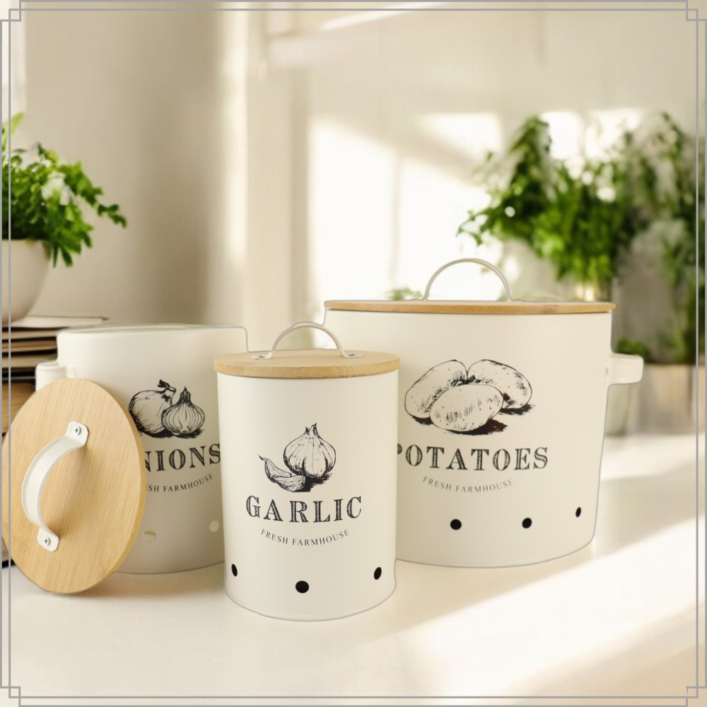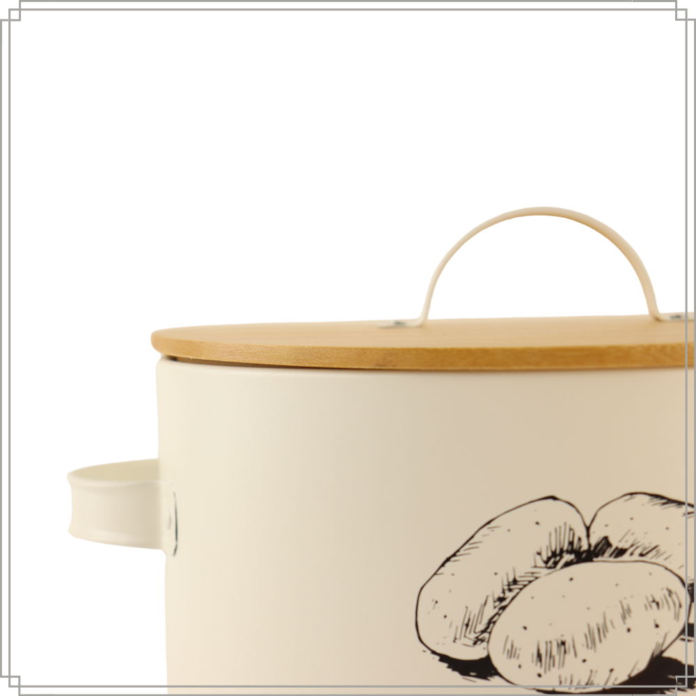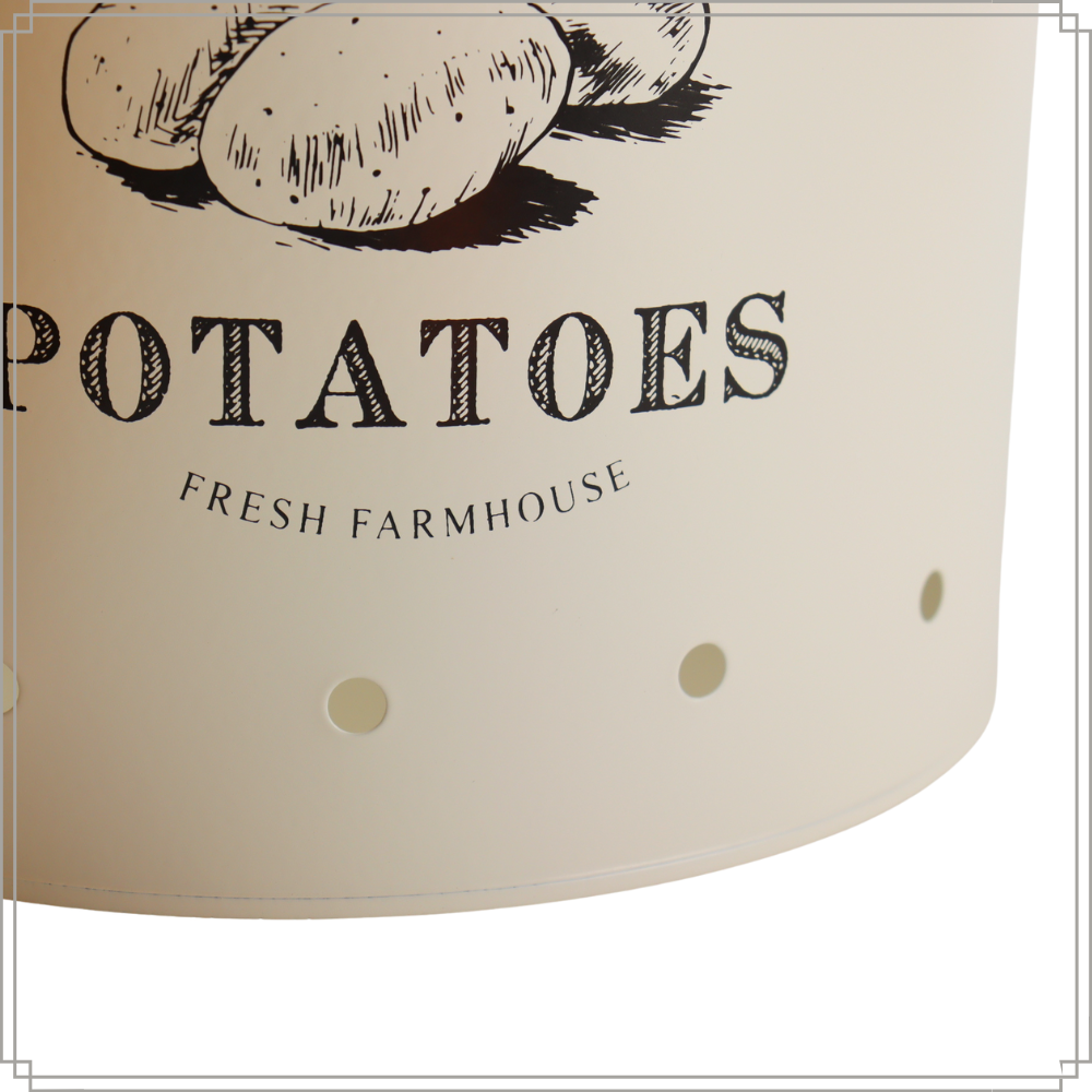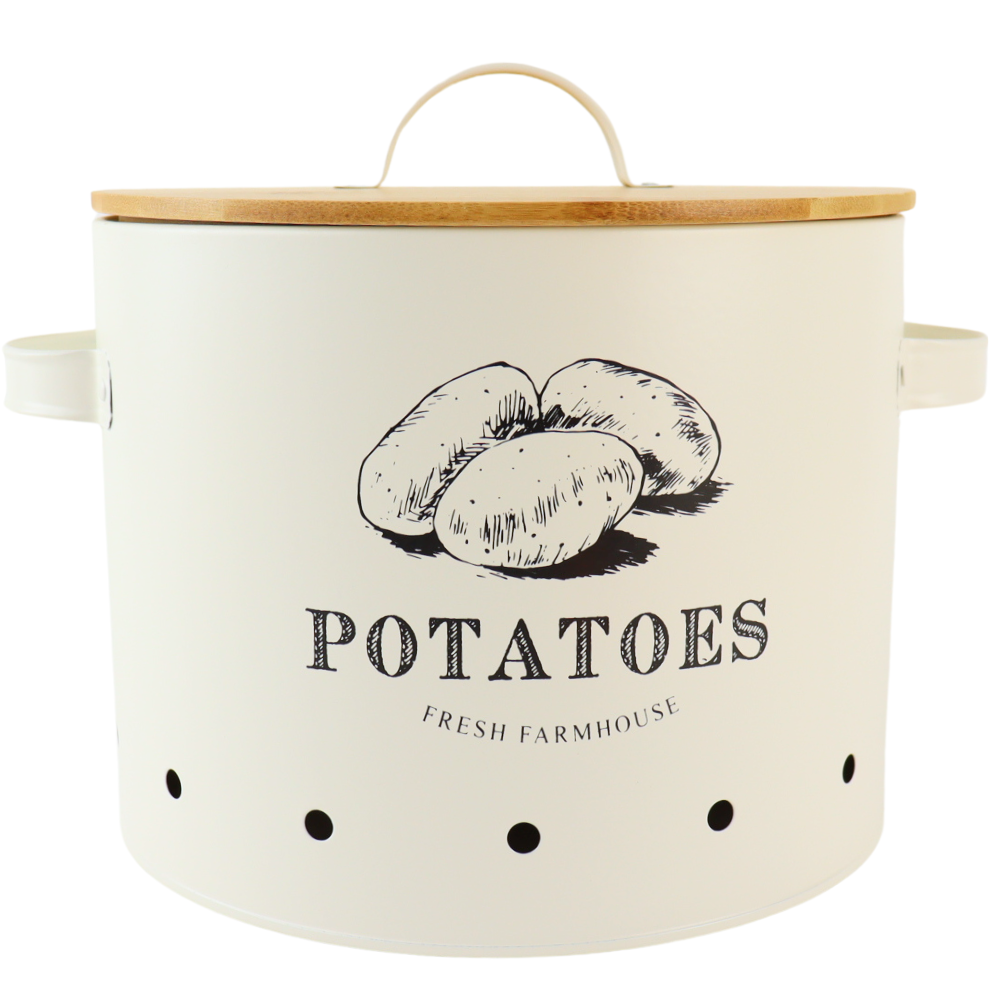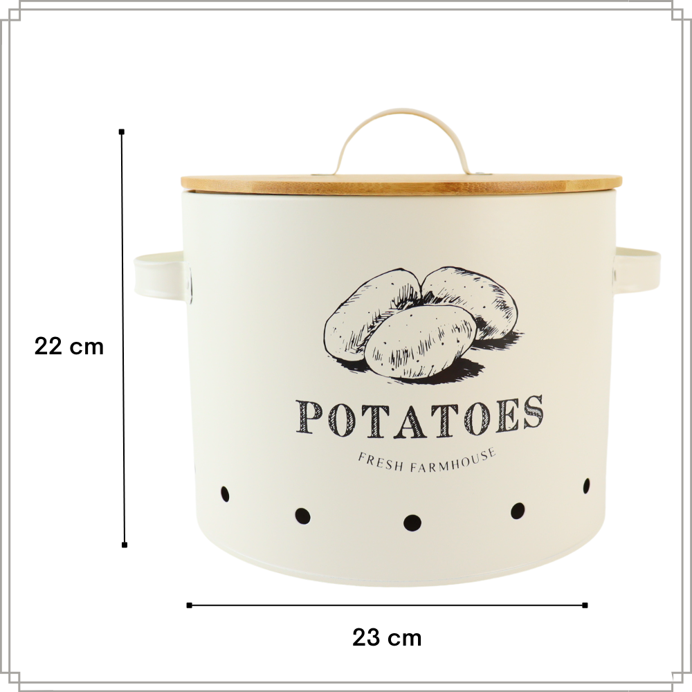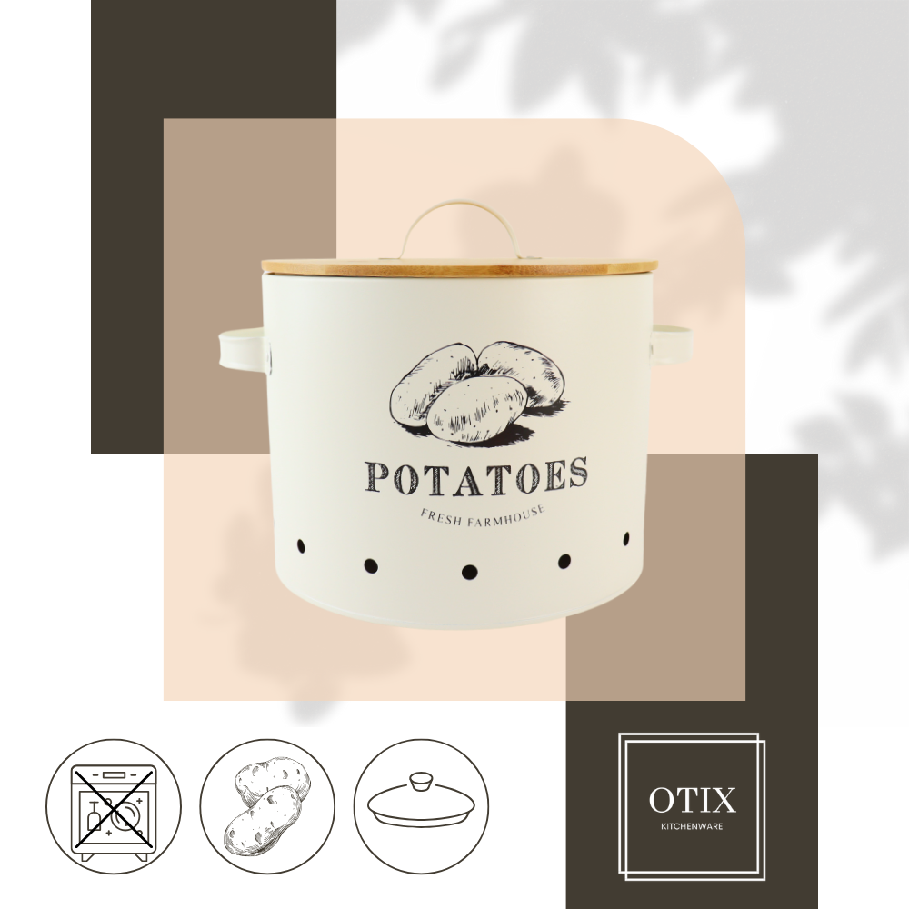De OTIX Aardappelbak in Creme is de perfecte oplossing voor het bewaren van aardappelen. Deze stijlvolle bewaarpot, gemaakt van duurzaam metaal, heeft een elegant ontwerp dat naadloos in elke keuken past. Het deksel sluit de aardappelbak goed af, terwijl de ventilatiegaten zorgen voor optimale luchtcirculatie, waardoor je aardappelen langer vers blijven. De warme Creme kleur voegt een frisse uitstraling toe aan je keuken, waardoor deze pot niet alleen functioneel, maar ook decoratief is. Let op! De bewaarpot is vaatwasserbestendig echter de deksel zelf niet!