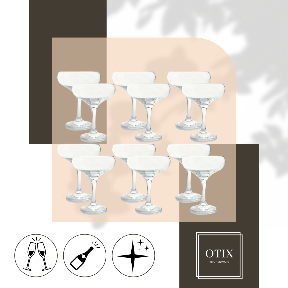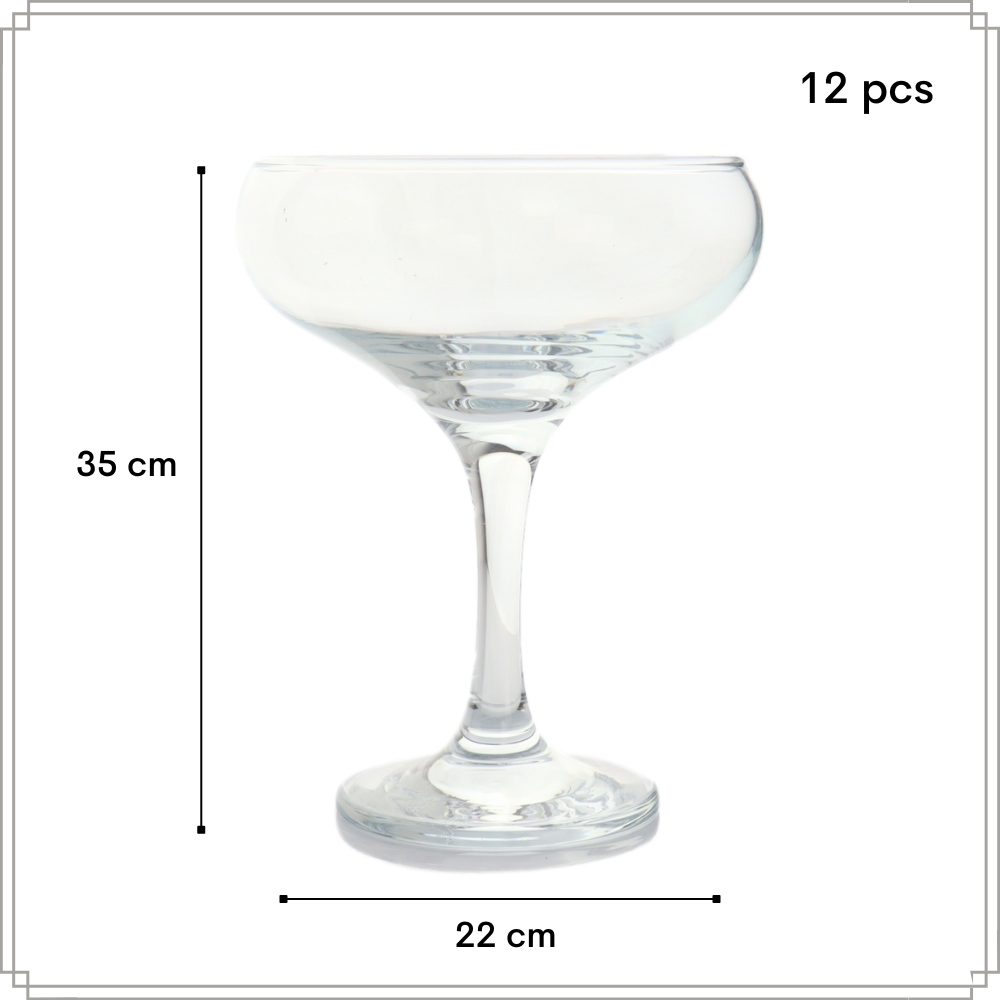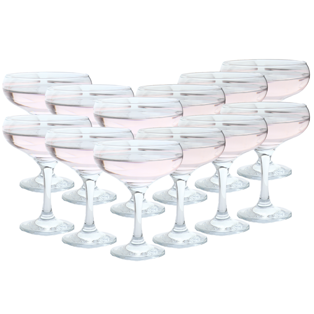 Proost in stijl met onze elegante champagnecoupes! Deze prachtige glazen zijn speciaal ontworpen voor het serveren van champagne en andere sprankelende dranken. Met hun verfijnde vorm en geribbeld glaswerk voegen ze een vleugje luxe toe aan elke gelegenheid. Perfect voor feesten, bruiloften, jubilea en andere speciale momenten. Maak van elk feest een sprankelend succes met onze champagnecoupes!