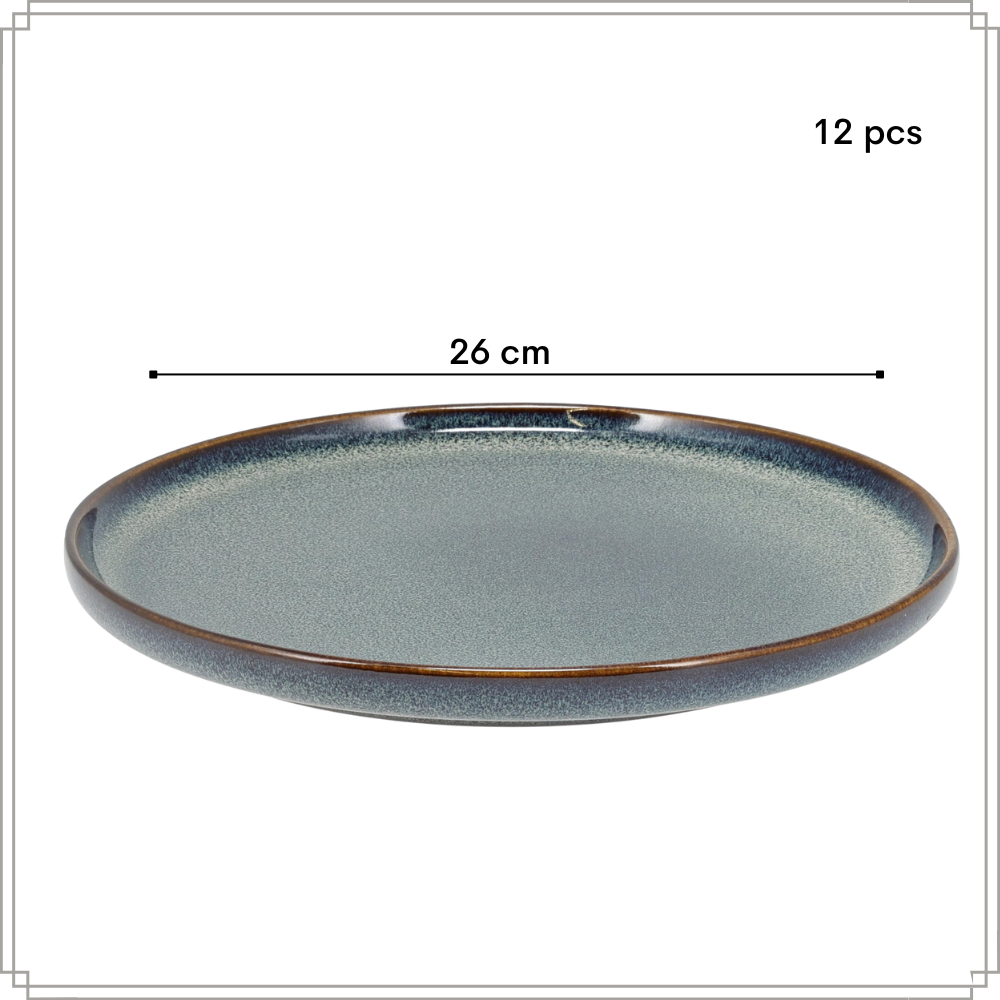 De OTIX Dinerborden uit de “EBONY” collectie vormen een set van 12 stijlvolle borden, perfect voor een compleet diner met vrienden of familie. Deze dinerborden, met een royale diameter van 26 cm, zijn uitgevoerd in een diepe blauwe kleur en gemaakt van hoogwaardig keramiek. Ideaal voor het serveren van hoofdgerechten en het creëren van een luxe tafelsetting. Let op: Alle onderdelen van de OTIX EBONY-serie zijn uniek en met de hand gemaakt. Dit betekent dat elk bord een eigen, uniek design heeft. Let op! De producten worden zorgvuldig gebakken in de oven, waarbij de exacte plaatsing in de oven de kleur, glans of matte afwerking en het patroon van elk stuk beïnvloedt. Hierdoor kun je binnen je set verschillende variaties verwachten, zoals glanzende of matte afwerkingen, of subtiele kleurnuances. De sets worden willekeurig samengesteld en zijn vooraf verpakt. Elk bord is een authentiek en exclusief kunstwerk!