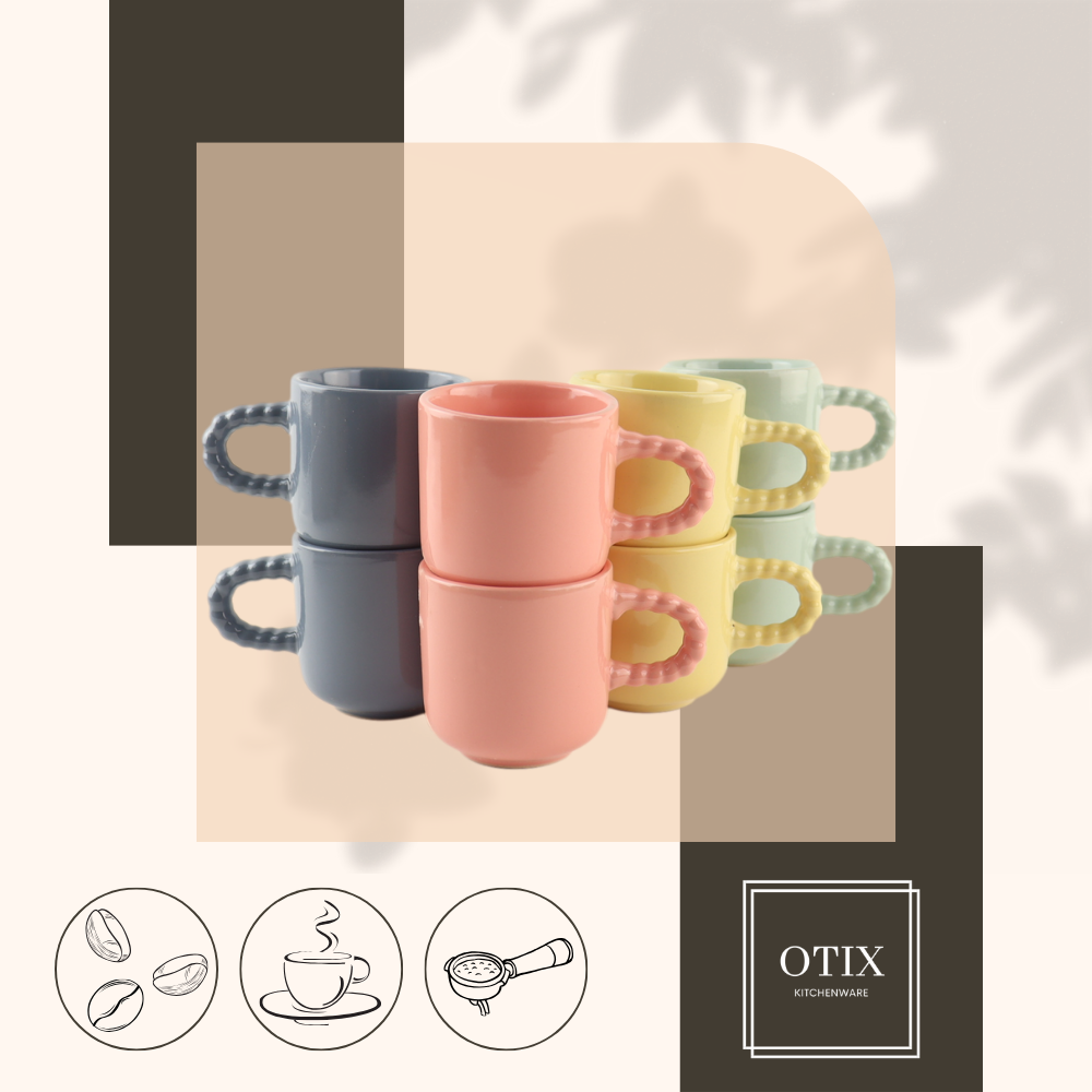 De OTIX Espressokopjes met Oor bieden een klassieke manier om van je favoriete koffie te genieten. Deze set van 8 koffietassen, elk met een capaciteit van 120 ml, is gemaakt van duurzaam aardewerk en voorzien van een handig oor voor een comfortabele grip.