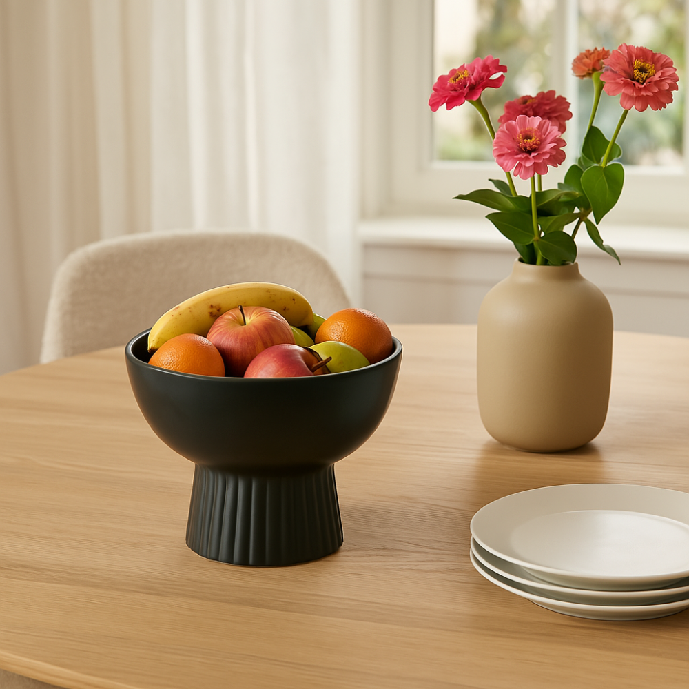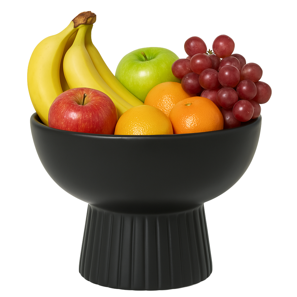 Geef je keuken of eettafel een moderne en elegante uitstraling met de OTIX Fruitschaal in zwart. Deze stijlvolle fruitschaal is gemaakt van hoogwaardig metaal en heeft een open, luchtig design dat niet alleen een strakke uitstraling geeft, maar ook zorgt voor een optimale luchtcirculatie, waardoor je fruit langer vers blijft.