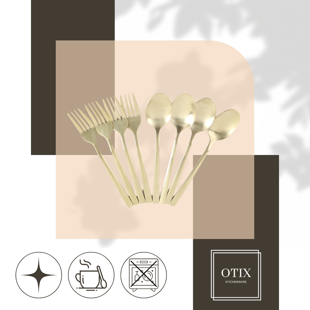 De OTIX Gebaksvorkjes en Theelepels Set is een stijlvolle en praktische aanvulling op je bestekcollectie. Deze set van 8 kleine lepels en vorken is perfect voor het serveren van gebak en het roeren van je favoriete warme dranken. Met hun elegante ontwerp biedt deze bestekset een verfijnde manier om van je thee, koffie of desserts te genieten.