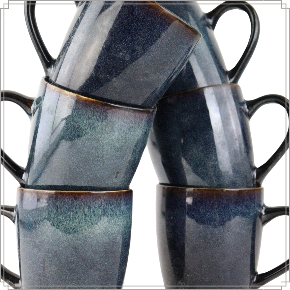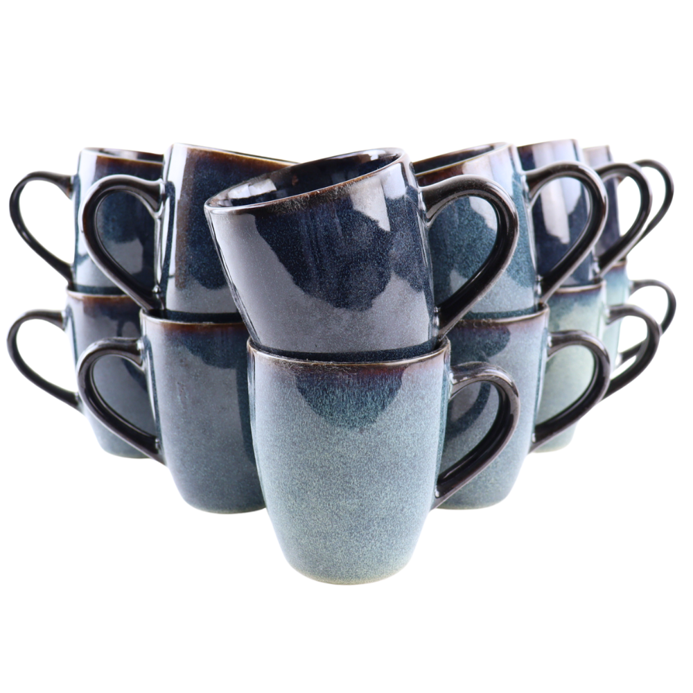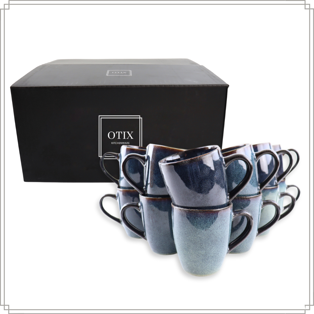 De OTIX Koffiekopjes met Oor uit de “EBONY” collectie is een set van twaalf stijlvolle koffietassen, perfect voor het genieten van je favoriete warme dranken zoals koffie, thee, of cappuccino. Met een royale inhoud van 350 ml zijn deze aardewerken mokken zowel praktisch als elegant.
